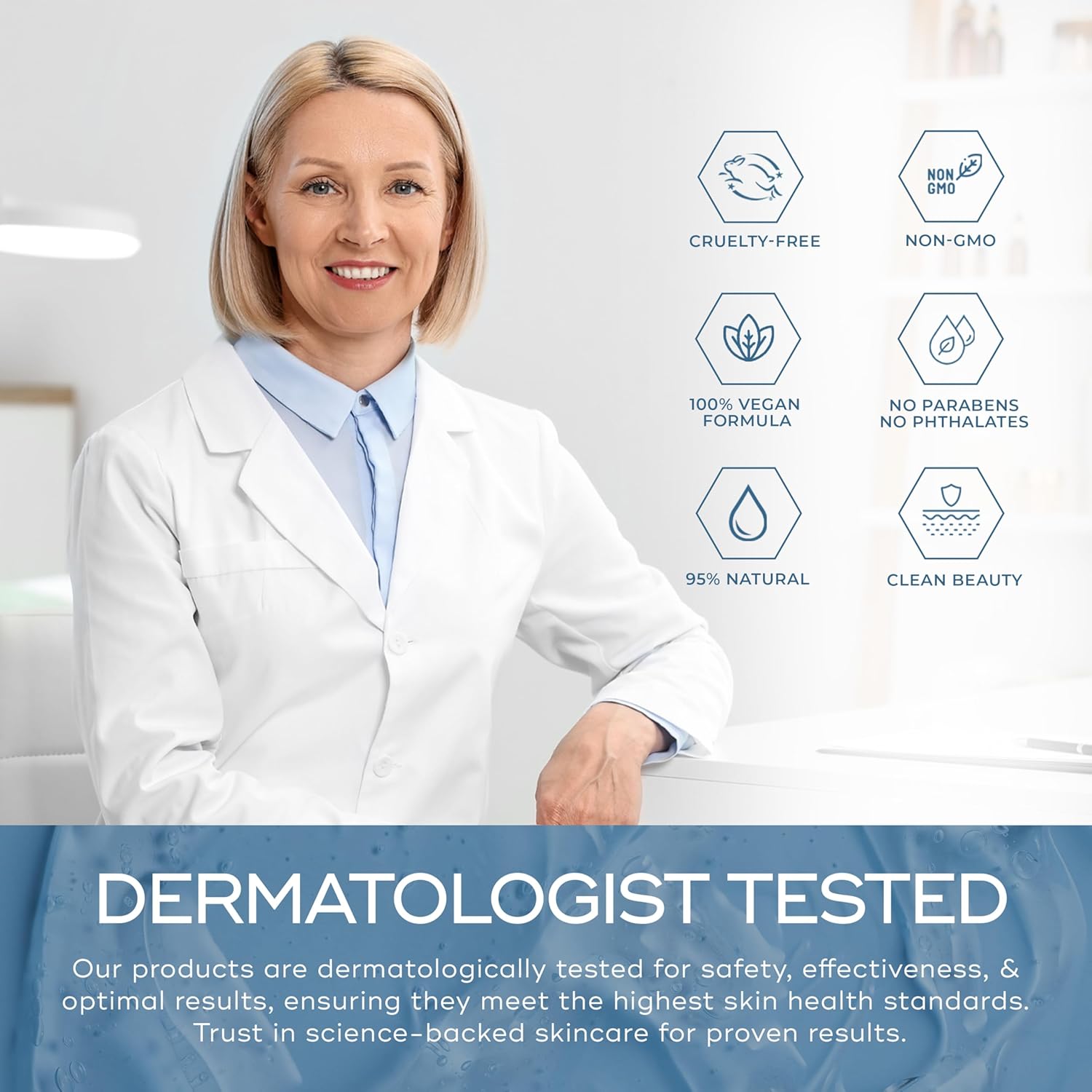 - CLEAN, SAFE & GENTLE FORMULA – 95% natural, vegan, cruelty-free, non-GMO, and dermatologist tested. Free from parabens, sulfates, and phthalates—ideal for sensitive, dry, or mature skin types.