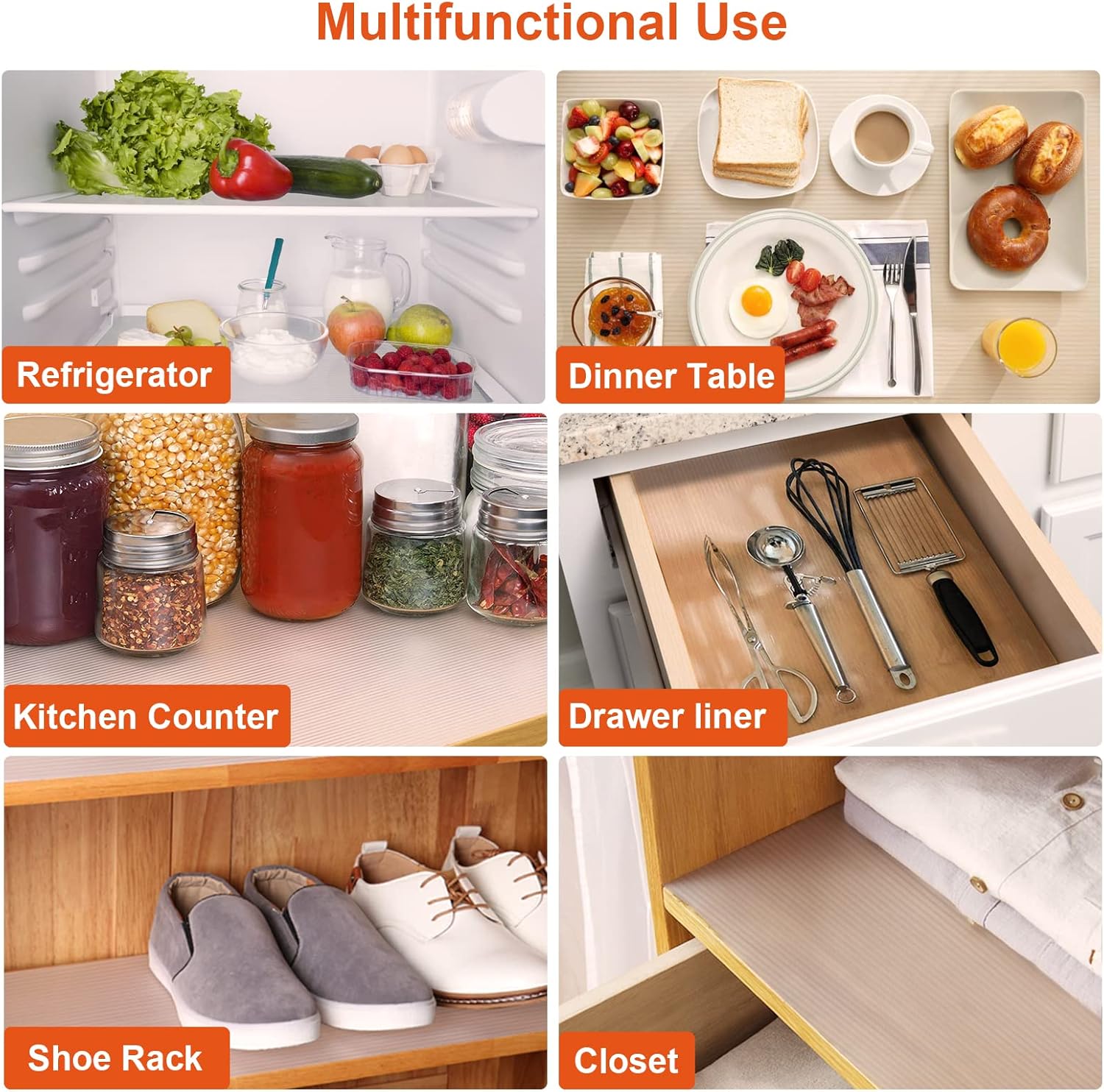 - 【Multi Use】:This pantry liner can be used not only to protect furniture, but also to prevent kitchen utensils from falling off. It can also be used as a refrigerator liner, shoe rack liner, drawer liner or sofa liner, multi-functional use, household essential products. If you have any questions, please feel free to contact us, I will be happy to help you.