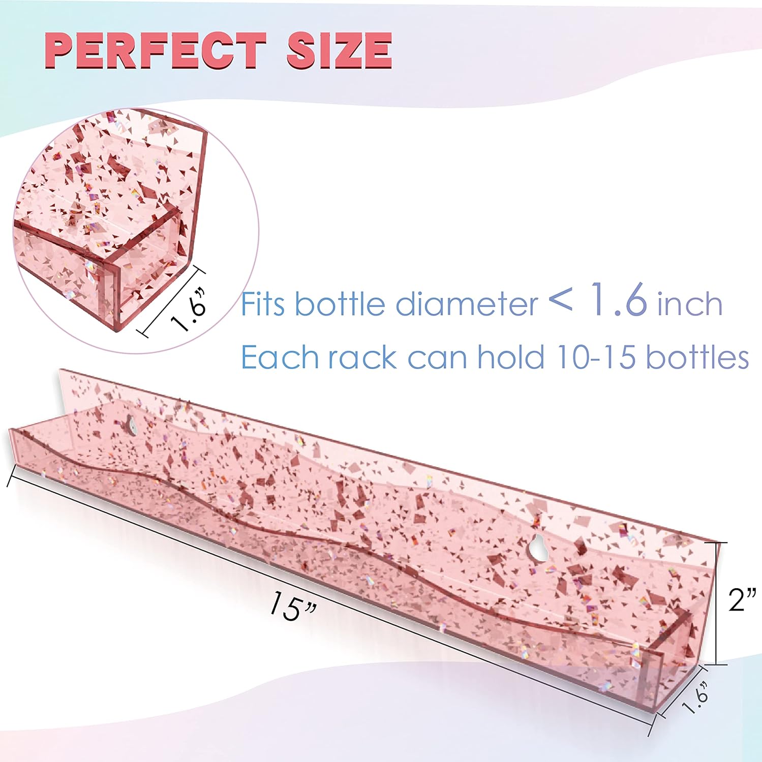 YMVV 15" Acrylic Nail Polish Organizer - Wall Mounted Shelf with Iridescent Glitters Sequin Inside - Great Display for Salons & Retailers (6 Pack)