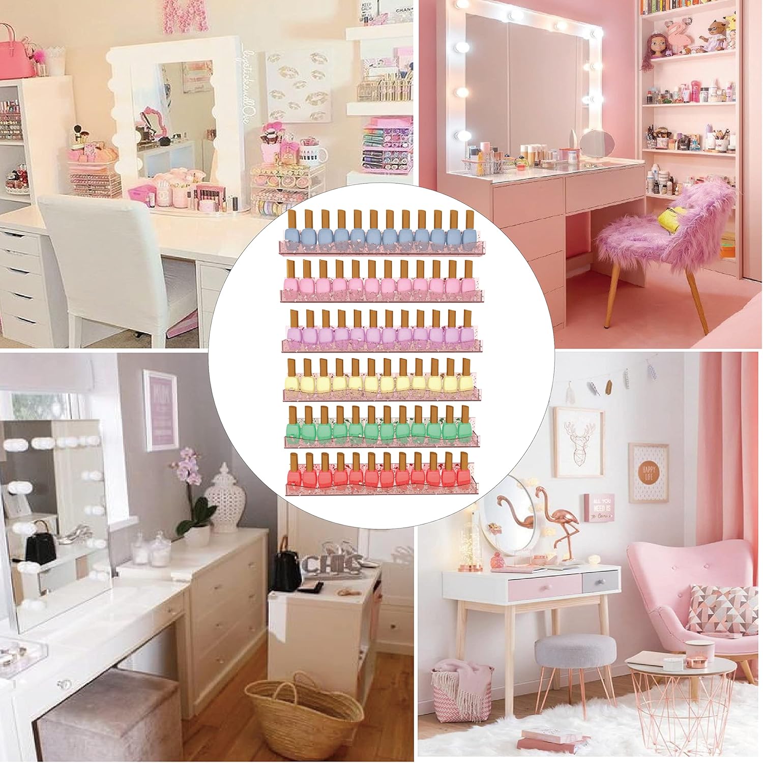 - Easy Access-Each 15'' nail polish rack is separated and can be mounted individually.The hanging mounting-hole for easy installation and removal.