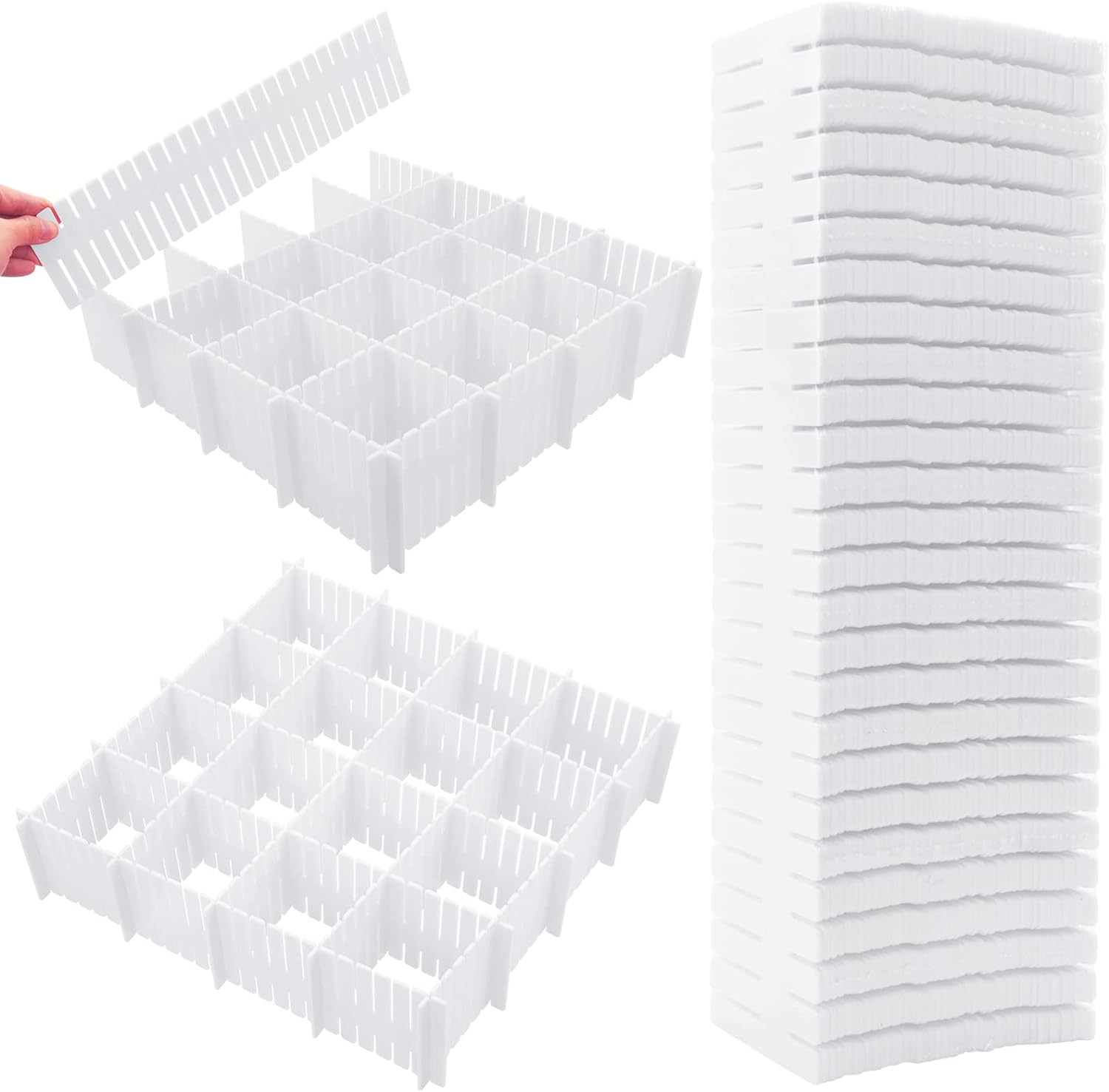 45 Pack Drawer Dividers, Plastic Adjustable Drawer Storage Organizer for Tidying Clutter Socks, Underwear, Makeup, Kitchen, Dresser White