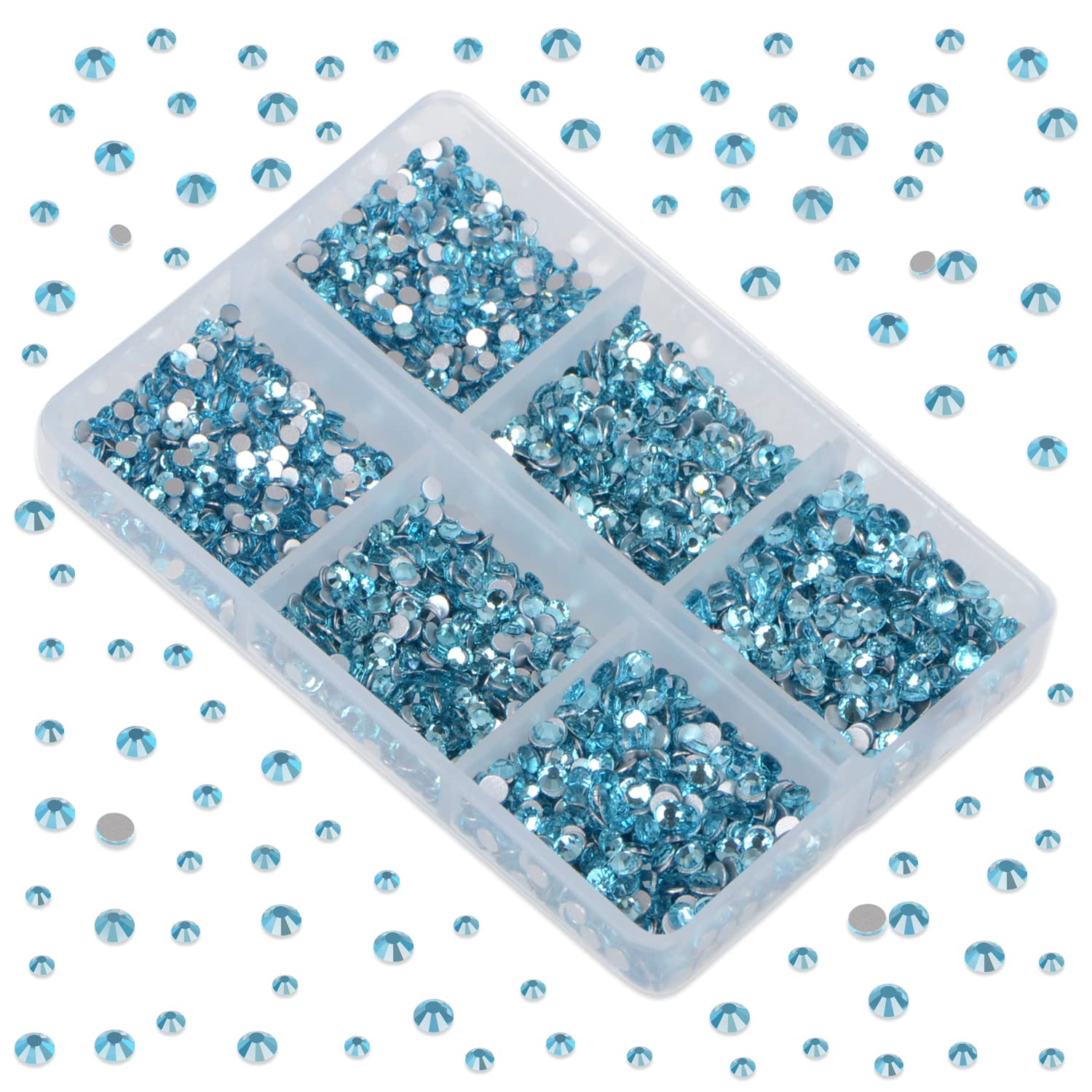 LPBeads 6000 Pieces Lake Blue Non Hotfix Rhinestones 6 Sizes Round Crystal Glass Flat Back Rhinestones with Tweezers and Picking Pen for Nail Art Crafts Clothes Bags DIY
