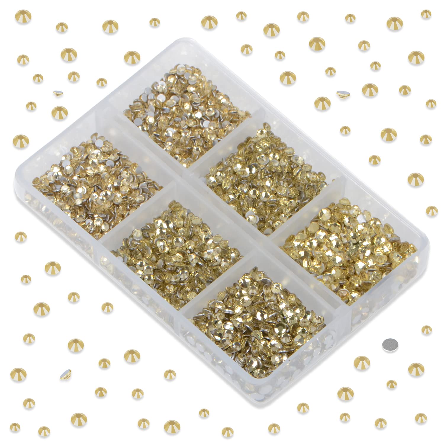 LPBeads 6000 Pieces Jonquil Non Hotfix Rhinestones 6 Sizes Round Crystal Glass Flat Back Rhinestones with Tweezers and Picking Pen for Nail Art Crafts Clothes Bags DIY