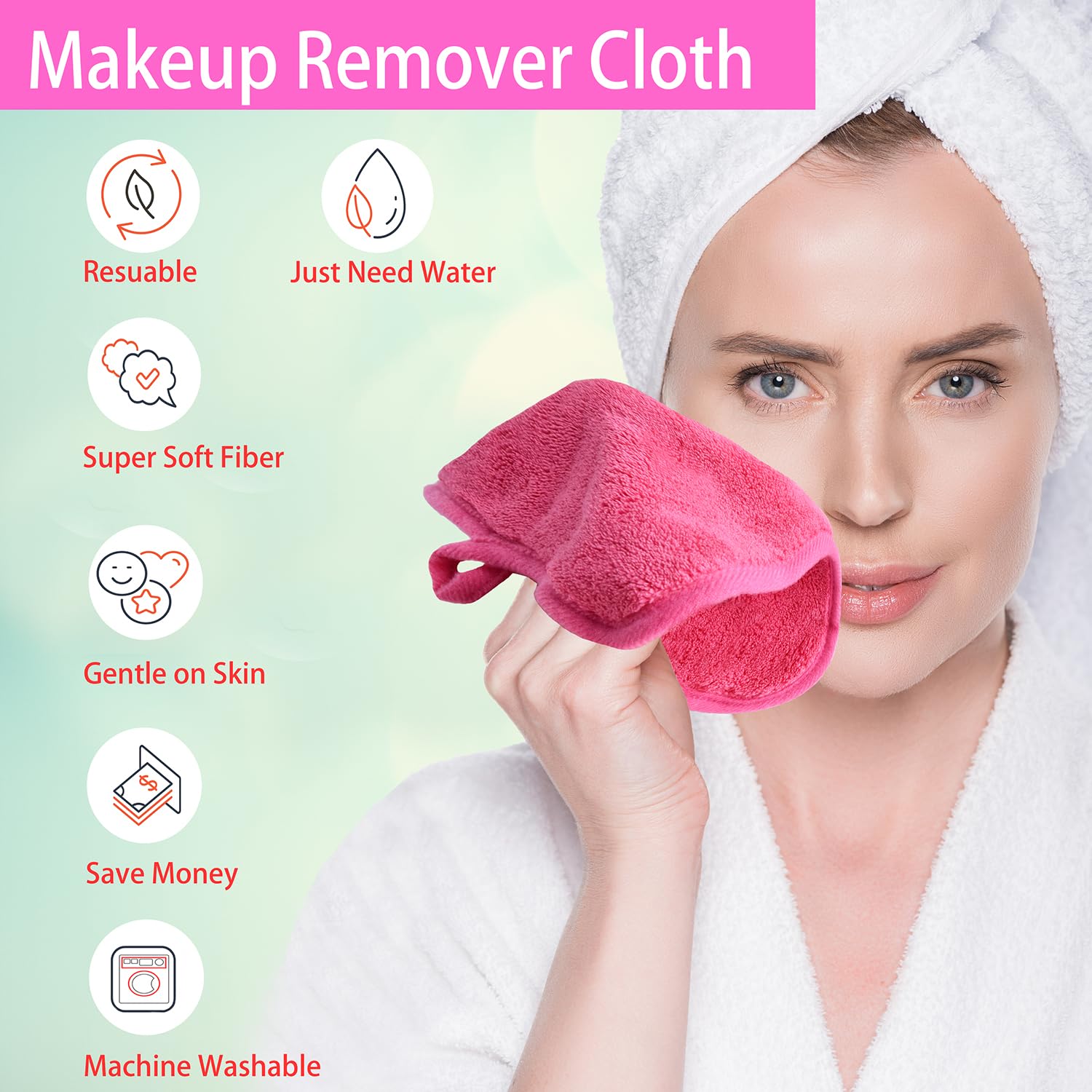 Makeup Remover Cloths for Face, Eye, Lips - Reusable Makeup Remover Pads Soft Microfiber Facial Cleansing Cloths 6 x 12 inch 6 Pack (Dark Pink)