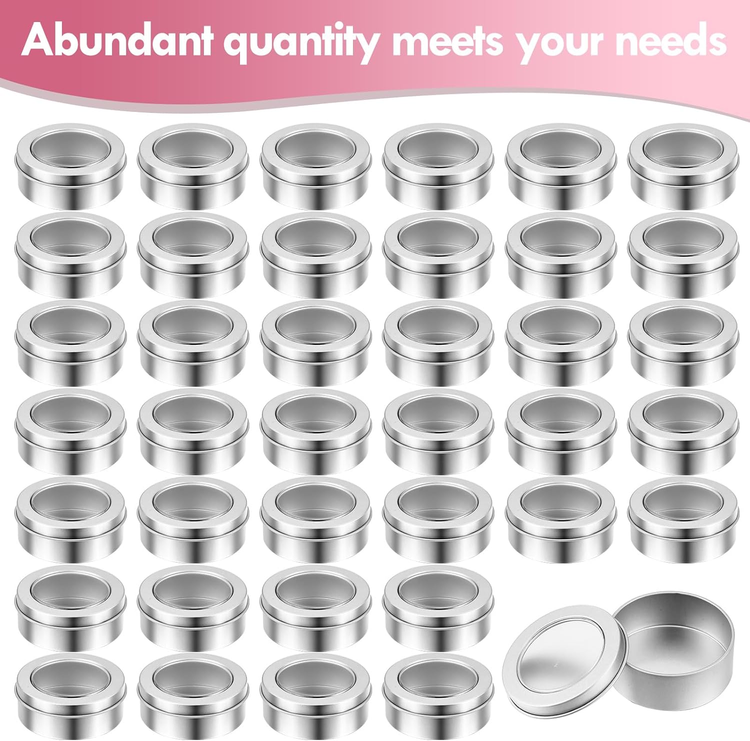 - Sizes: inside volume of this tin can is 2 ounce/ 60 ml, outside diameter is 2.56 inch/ 6.5 cm, depth is 1 inch/ 2.5 cm, clear view window top diameter is 1.9 inch/ 4.9 cm; Moderate storage capacity is suitable for candies, candles and other items