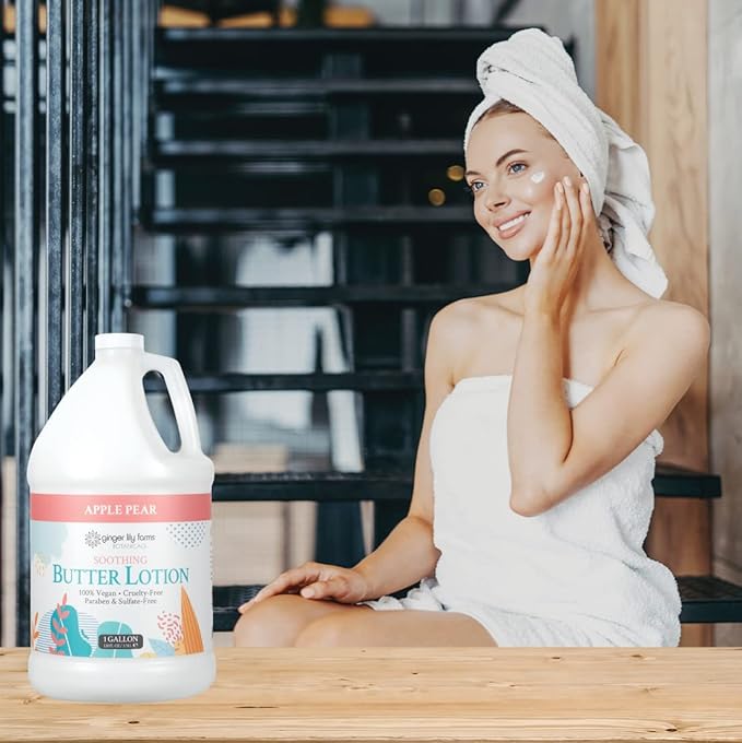 Ginger Lily Farms Botanicals Soothing Butter Lotion for Dry Skin, 100% Vegan & Cruelty-Free, Apple Pear Scent, 1 Gallon Refill (128 fl oz)