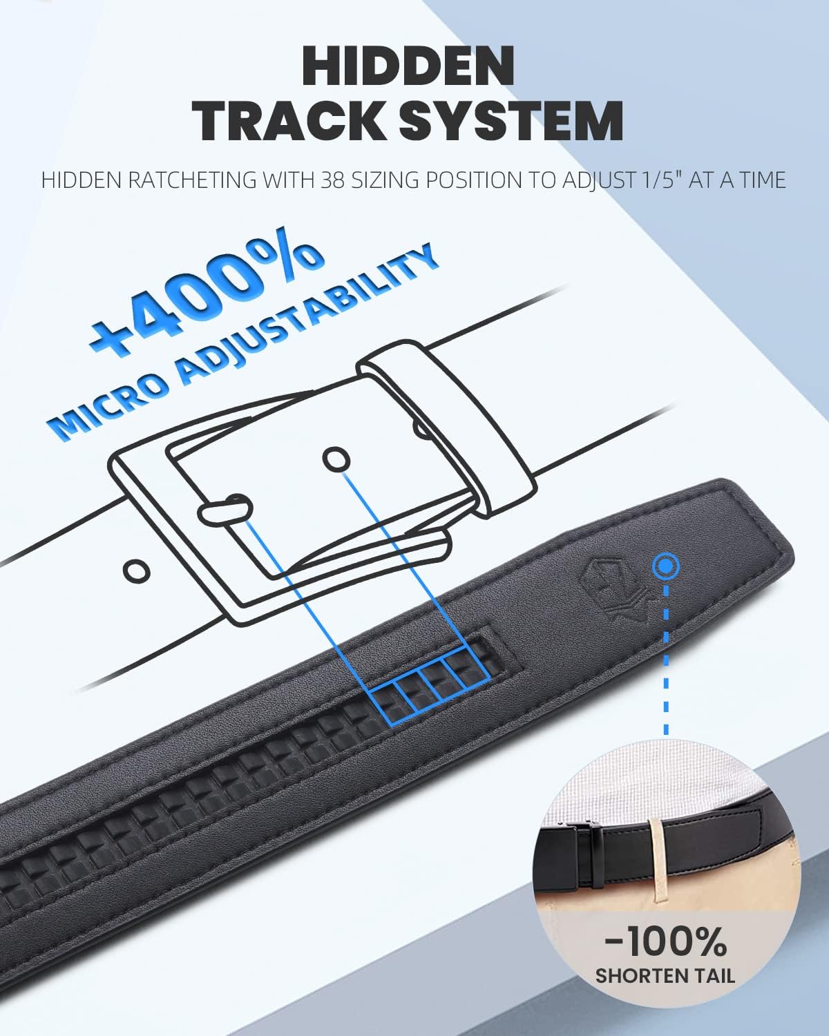 Zitahli Belt Men, Ratchet Belt Dress with 1 3/8" Premium Leather,Slide Belt with Easier Adjustable Automatic Buckle