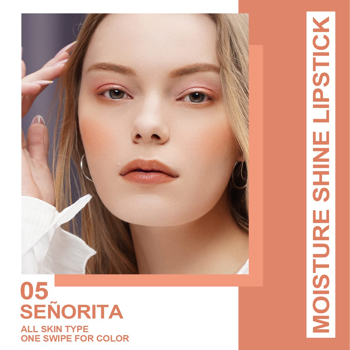 Oulac Orange Nude Shine Lipstick - Peach Moisturizing Lip Stick Glossy Tinted Lip Balm, Sheer Shine Juicy Finish, Lightweight and Hydrating Formula for Dry Lip Care, Vegan 2.2g/0.07oz (05)