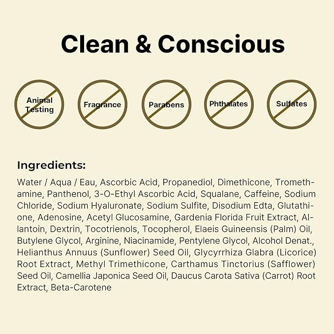 - Dermatological Ingredients: Pure Vitamin C (Ascorbic acid) helps achieve youthful glowing skin. Super Vitamin E (Tocotrienol) helps fight signs of aging and slows down skin damage. Hyaluronic acid delivers rich moisture deep into the skin and helps reduce the appearance of fine lines and wrinkles.