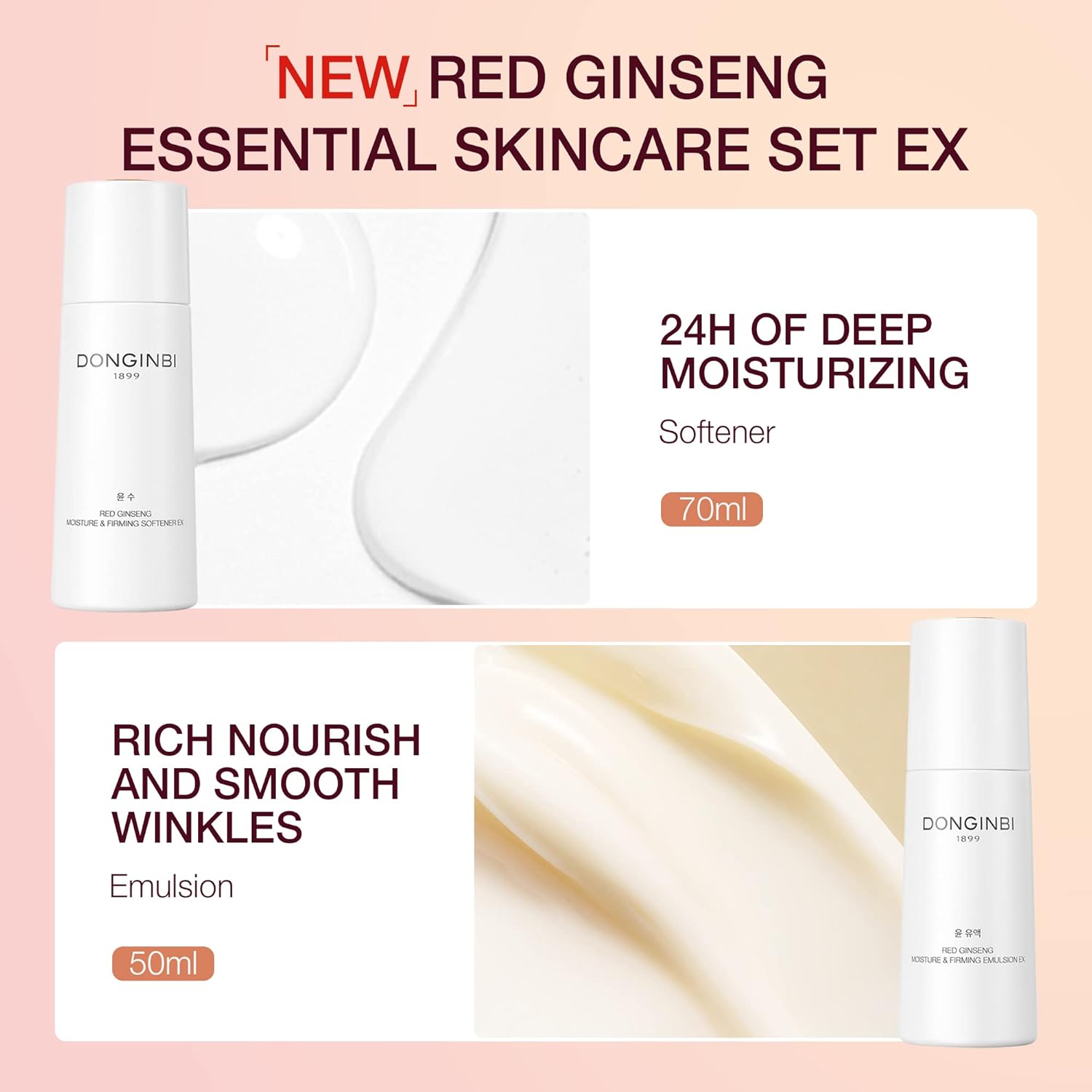 Donginbi Red Ginseng Essential Skin Care Set - Firming Moisturizer(1.69 floz), Hydrating Toner(2.37 floz), Korean Red Ginseng Essence(2.37 floz), Pore Cleaner(1.69 floz), Korean Skin Care