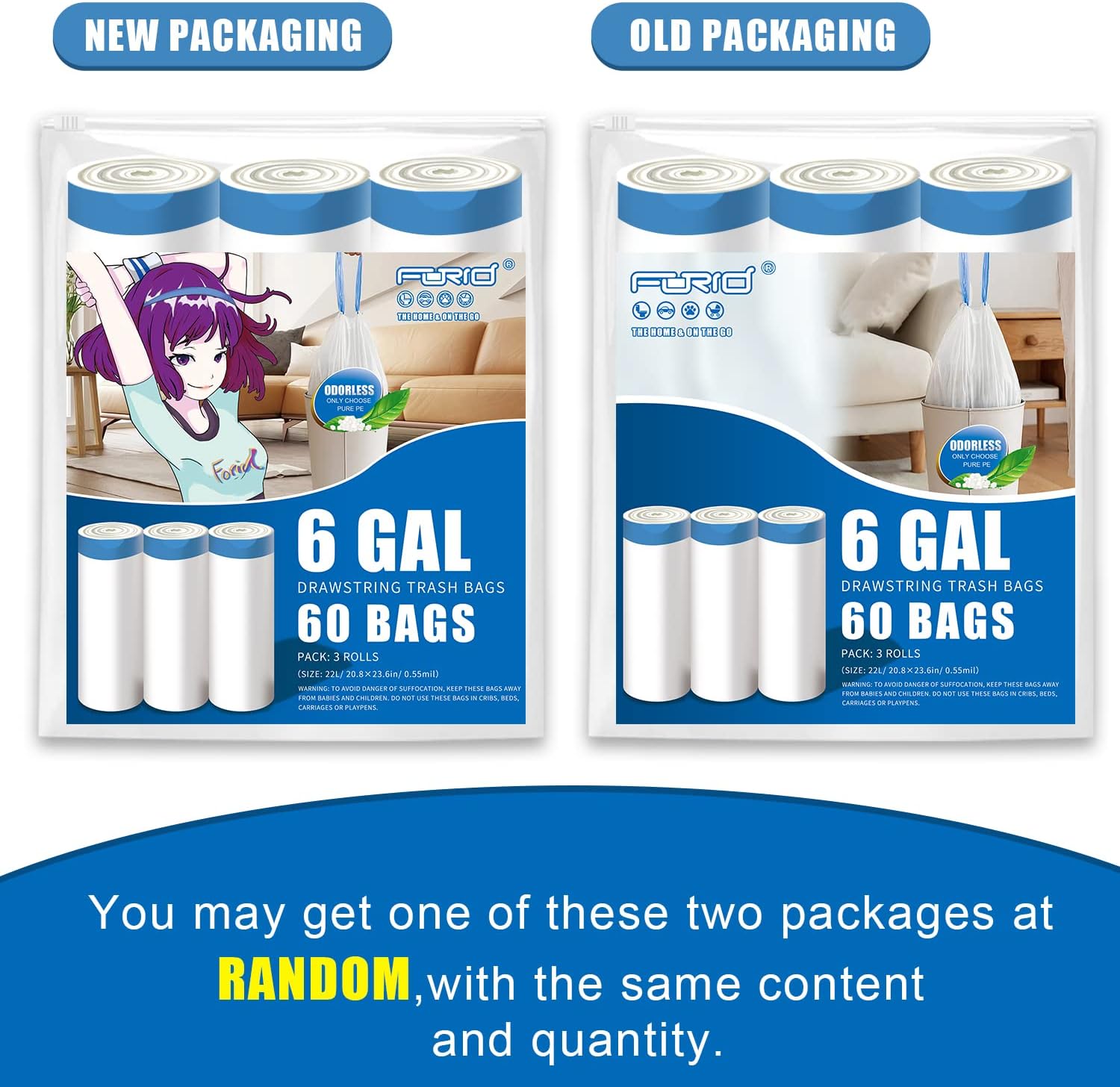 - 【Durable Drawstring Handle】The sturdy drawstrings of our 6 gallon trash bags have great carrying capacity and are easy to tie and lift. You don't have to worry about breaking or getting your hands dirty when you throw out the trash.