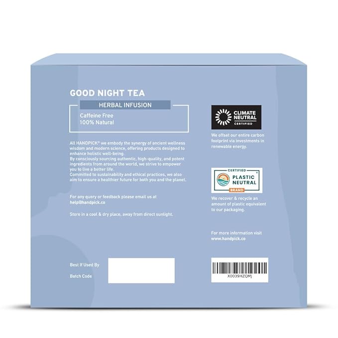 HANDPICK, Good Night Tea Bags (100 Count) Night Time Herbal Tea | Caffeine Free, Gluten Free | Floral Blend - Lavender, Chamomile, Peppermint | Natural Tea, Perfect for Bedtime