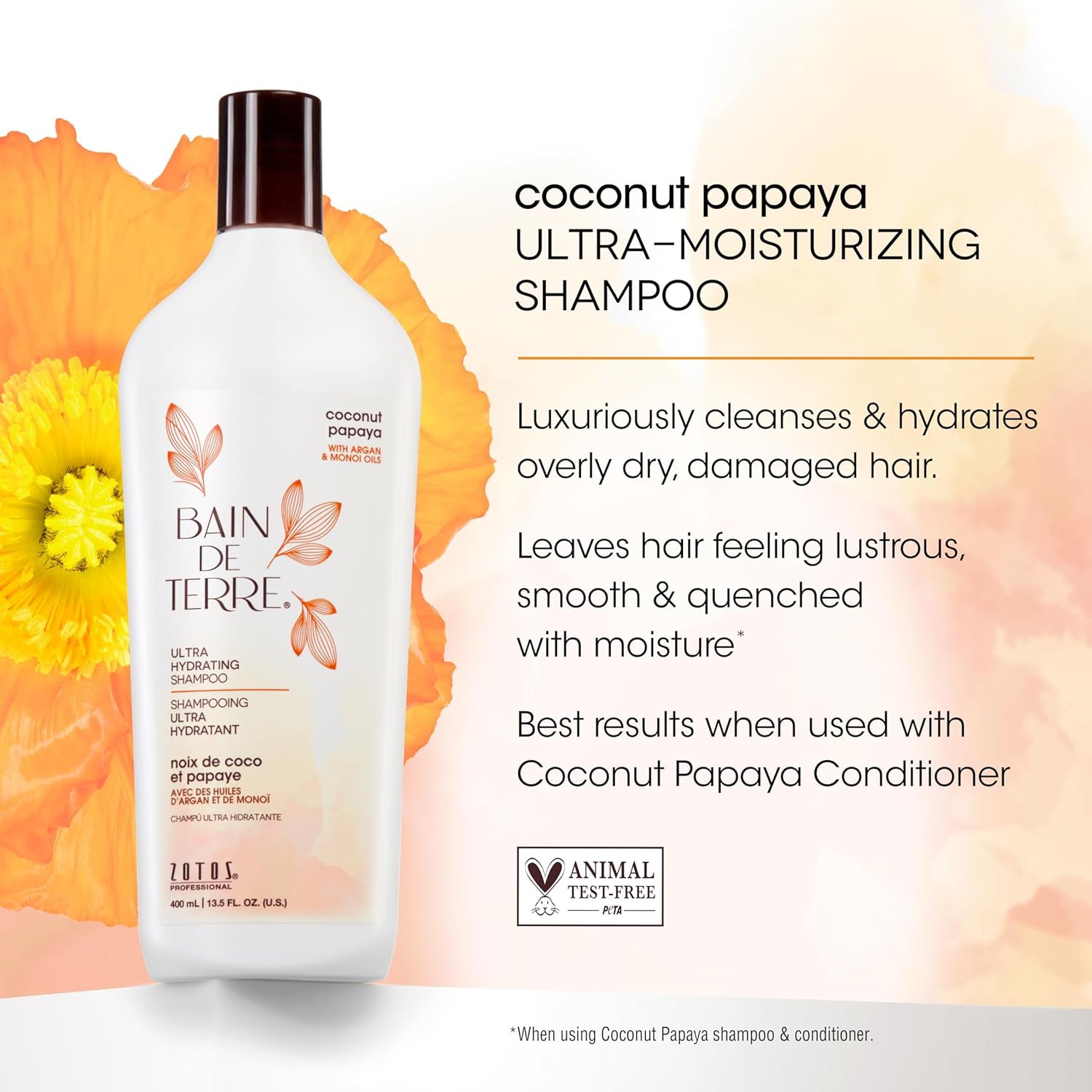 Bain de Terre Ultra Hydrating Shampoo and Conditioner Set | Coconut Papaya | Hydrates Overly Dry | Damaged Hair | Paraben Free | Color-Safe | 13.5 Fl Oz
