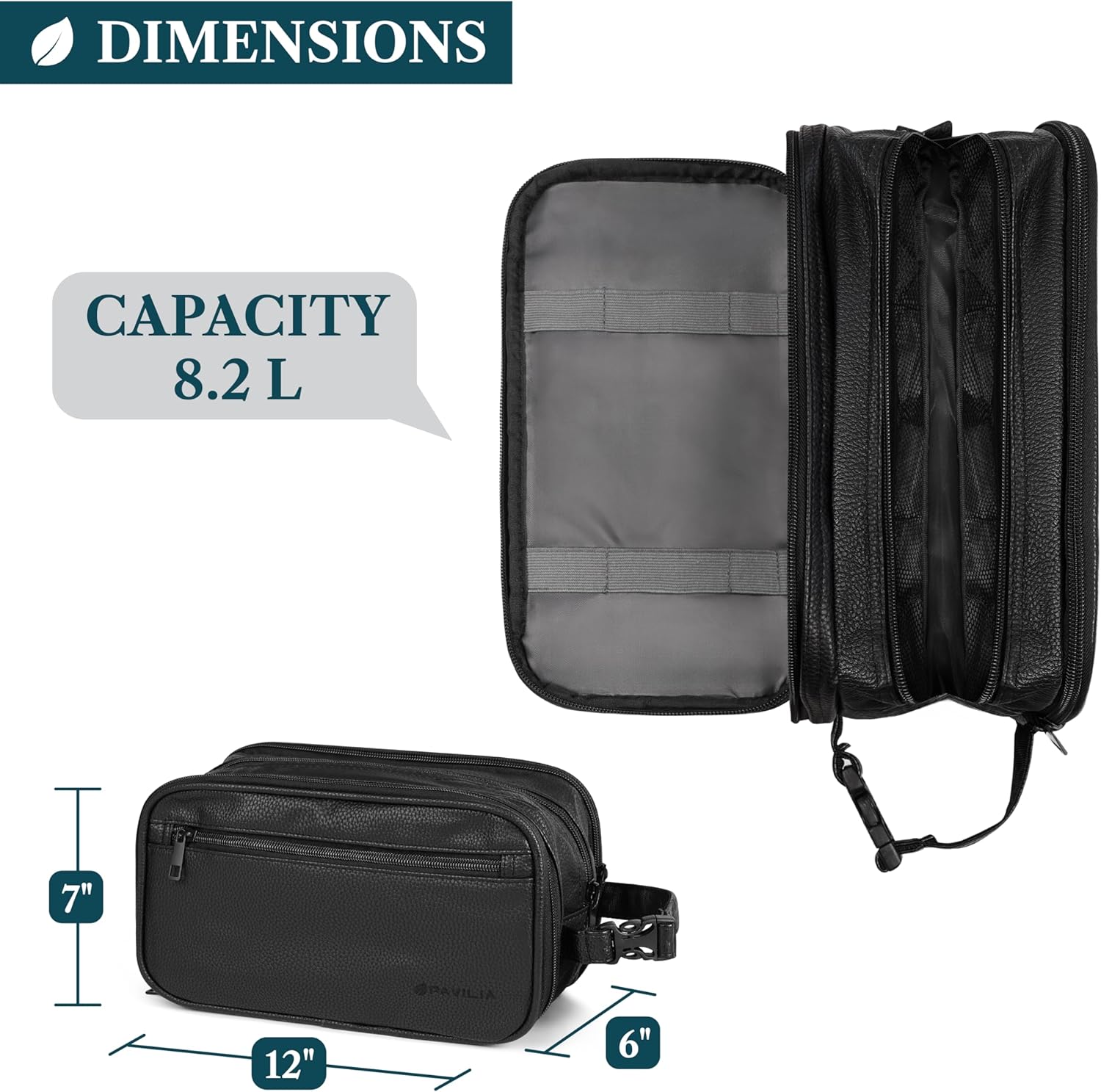 PAVILIA Toiletry Bag for Men, Travel Pouch Essentials Shaving Dopp Kit, Travel Bag Toiletries Organizer Case, Cosmetic Make Up Accessory, Water Resistant