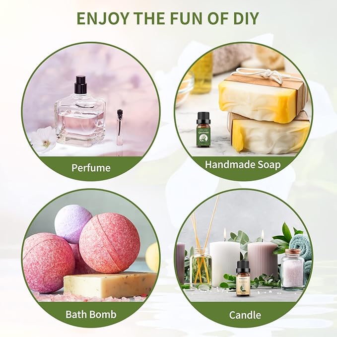 - Widely Used: Suitable for diffuser, cleaning, massage, perfume, home, bedroom, living room, bathroom, office, aromatherapy, outdoor, soap or candle making, yoga studio, car and spa, etc.