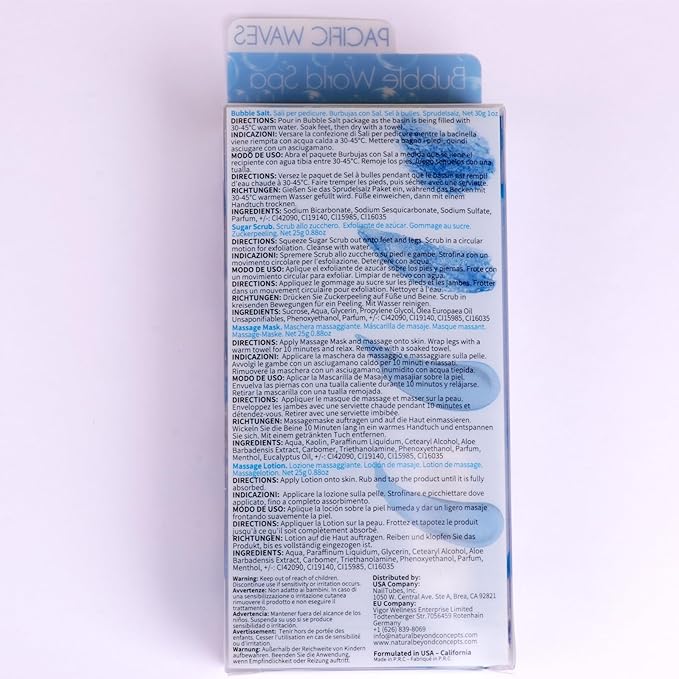 Pedicure Kit Foot Soak Set: Bubble Salt, Sugar Scrub, Massage Mask, Massage Lotion in a Box, 4 Step Foot Spa Kit for Dry Feet, Softens Calluses(1 Set Pacific Waves)