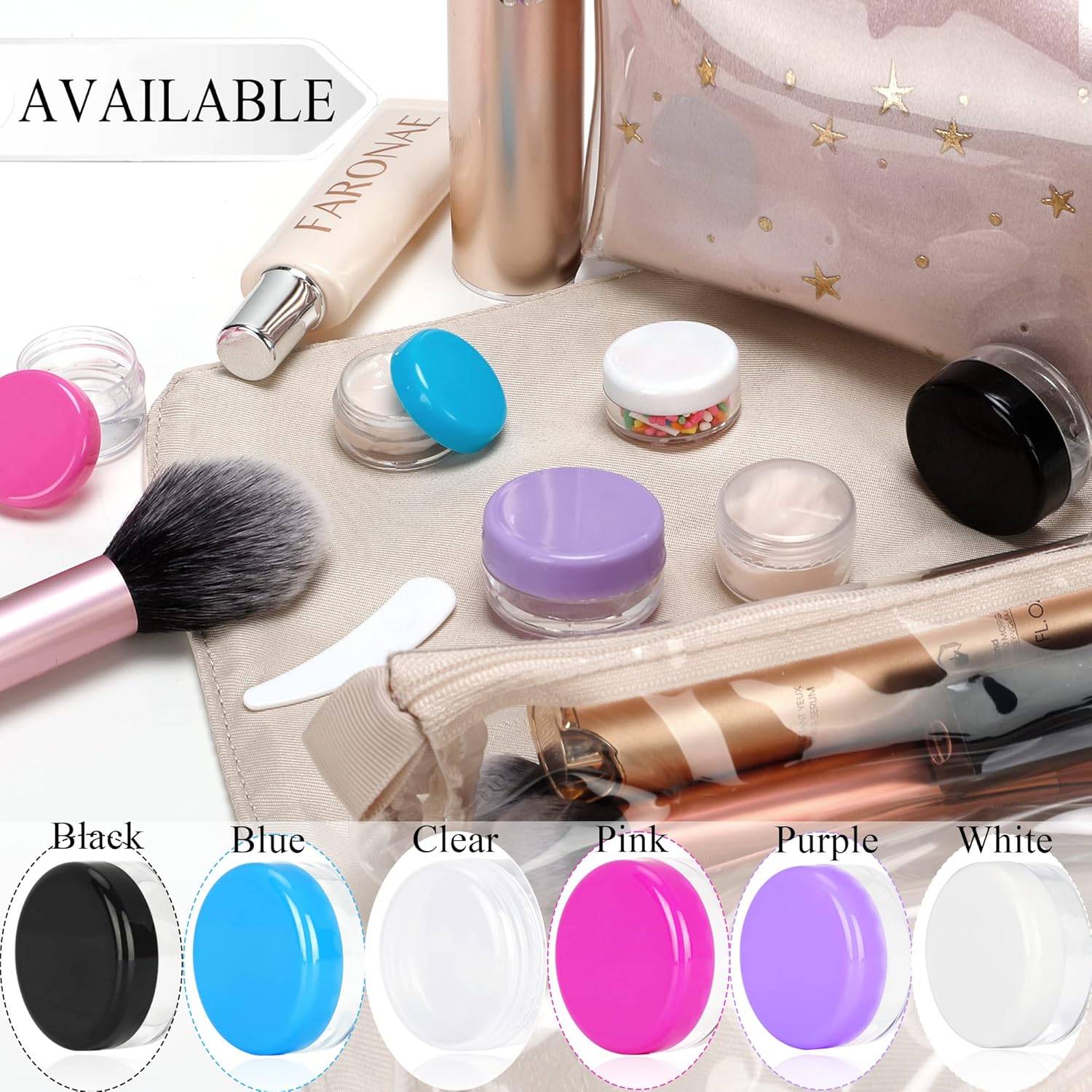 - ๐Multiple Options Fit All: One size and color is never enough! Our acrylic sample containers are available in 3 gram, 5 gram, 10 gram three sizes, and clear, pink, black, purple, blue, white six colors, which can meet all your needs. All jars are available in bulk quantities (25pack, 50pack, 100pack, 100pack) making them ideal for commercial and independent retail sellers, DIY products lovers.