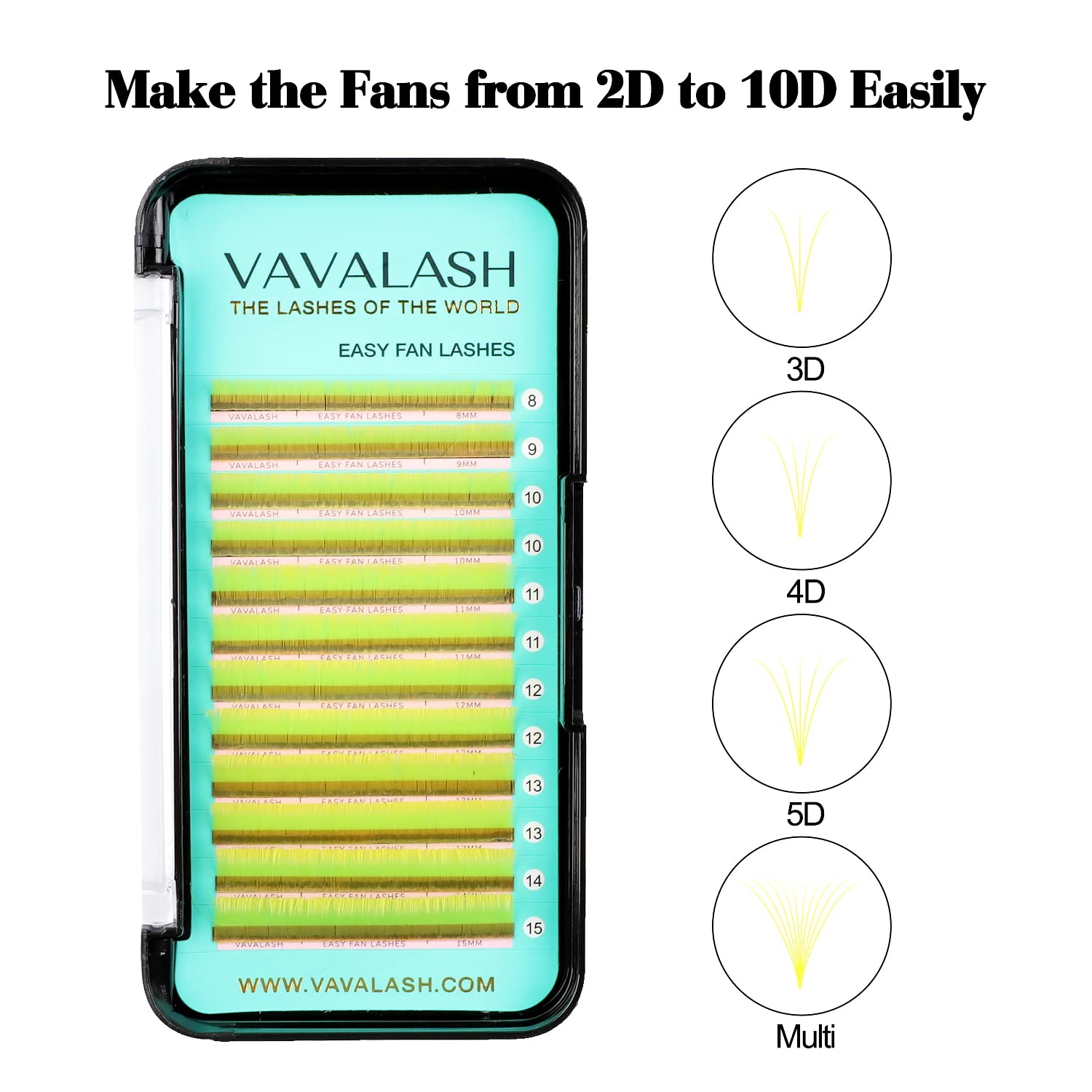 VAVALASH Colored Easy Fan Eyelash Extensions 0.07 D Curl 8-15mm Mixed Tray Yellow Self Fanning Lashes 2D-10D Colorful Volume lash extensions(Yellow,0.07-D-8-15 Mix)