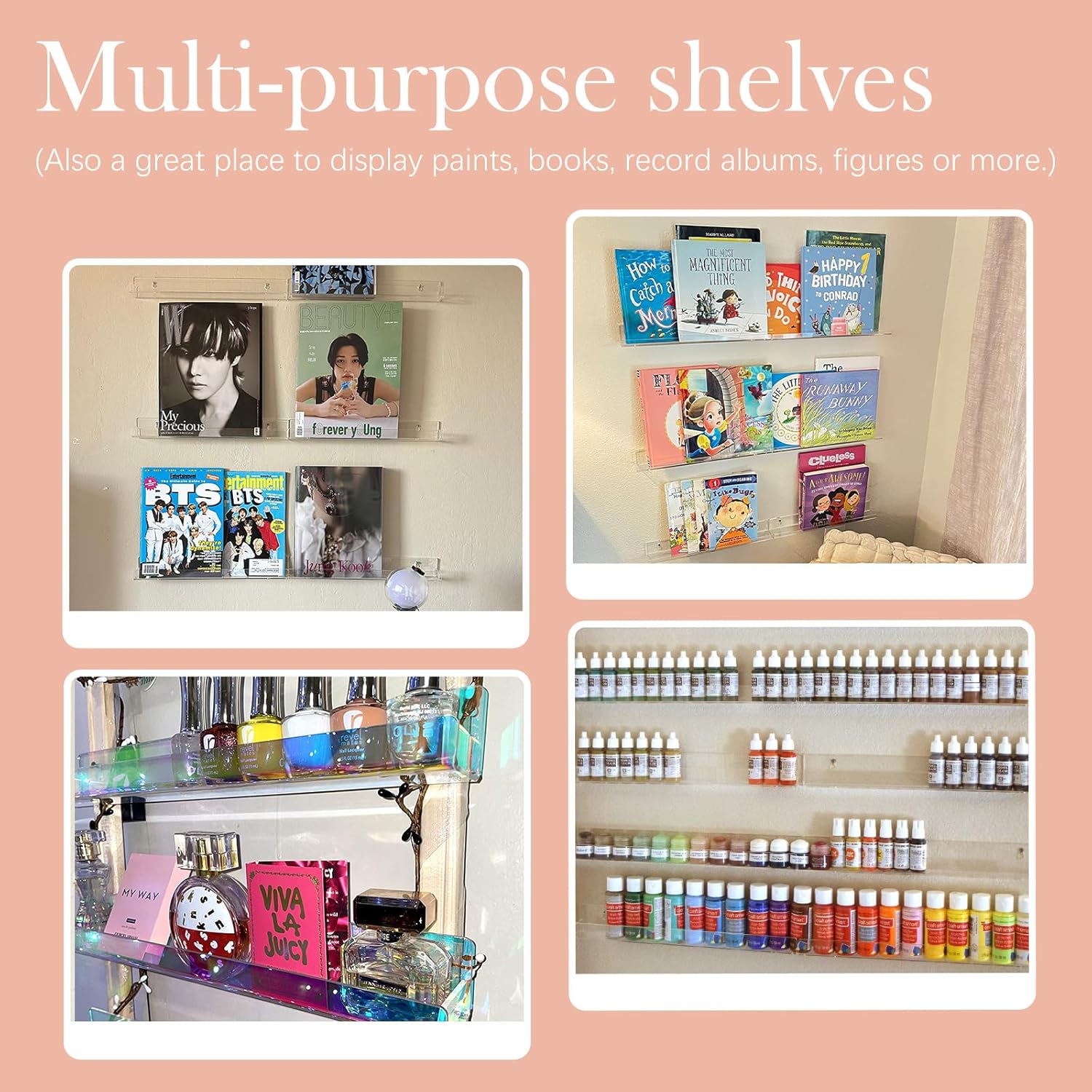- MULTI-PURPOSE ACRYLIC FLOATING SHELVES - FEMELI nail polish rack can be used as kids bookshelves, small toy shelves, picture racks, mini collectibles display shelves and is a good place for a series of small things to display or organize