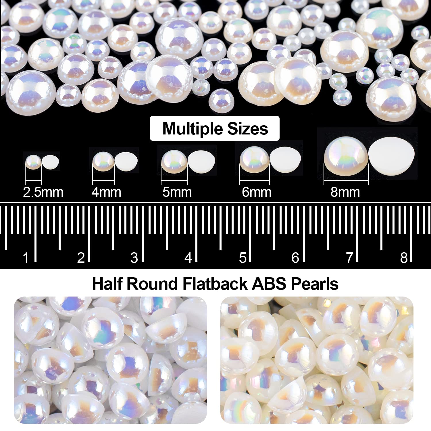 - ๐COLORFUL, MULTI-SIZE AND GREAT AMOUNT -- This Set Provides 12 Colors of Nail Rhinestones With 4 Sizes(2mm, 3mm, 4mm, 5mm๏ผ, And Flatback Half Round WhiteAB&BeigeAB Pearls With 5 Sizes(2.5mm, 4mm, 5mm, 6mm, 8mm). Approximately 3790 Pcs of Gems Beads in Total.