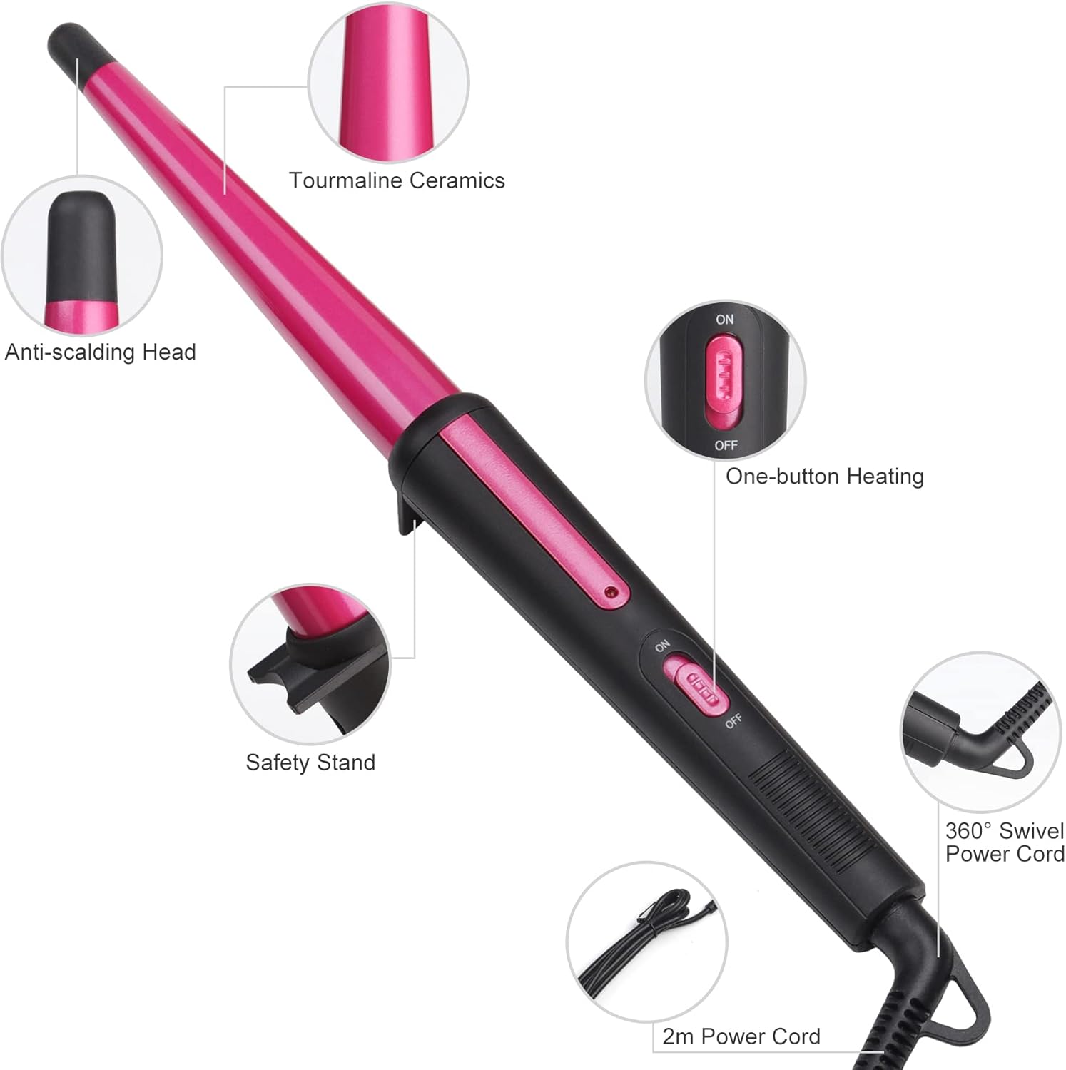 Hair Curling Wand, 0.5-1Inch Tapered Curling Iron, Professional Ceramic Hair Curler Wand with Heat-Resistant Glove, Dual Voltage (Rose Gold)