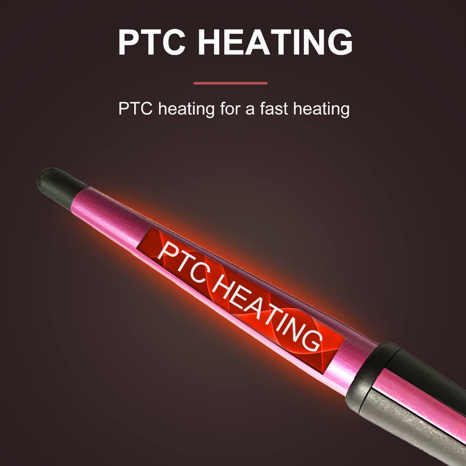 - 【Ceramic Wand Hair Curling Wands】JAETON hair curling iron is made of professional ceramic tourmaline, helps you quickly create a smooth and shiny hairstyle with less frizz. With heating PTC tech, the barrel can instant heat up in 60s, save your time in a rush morning