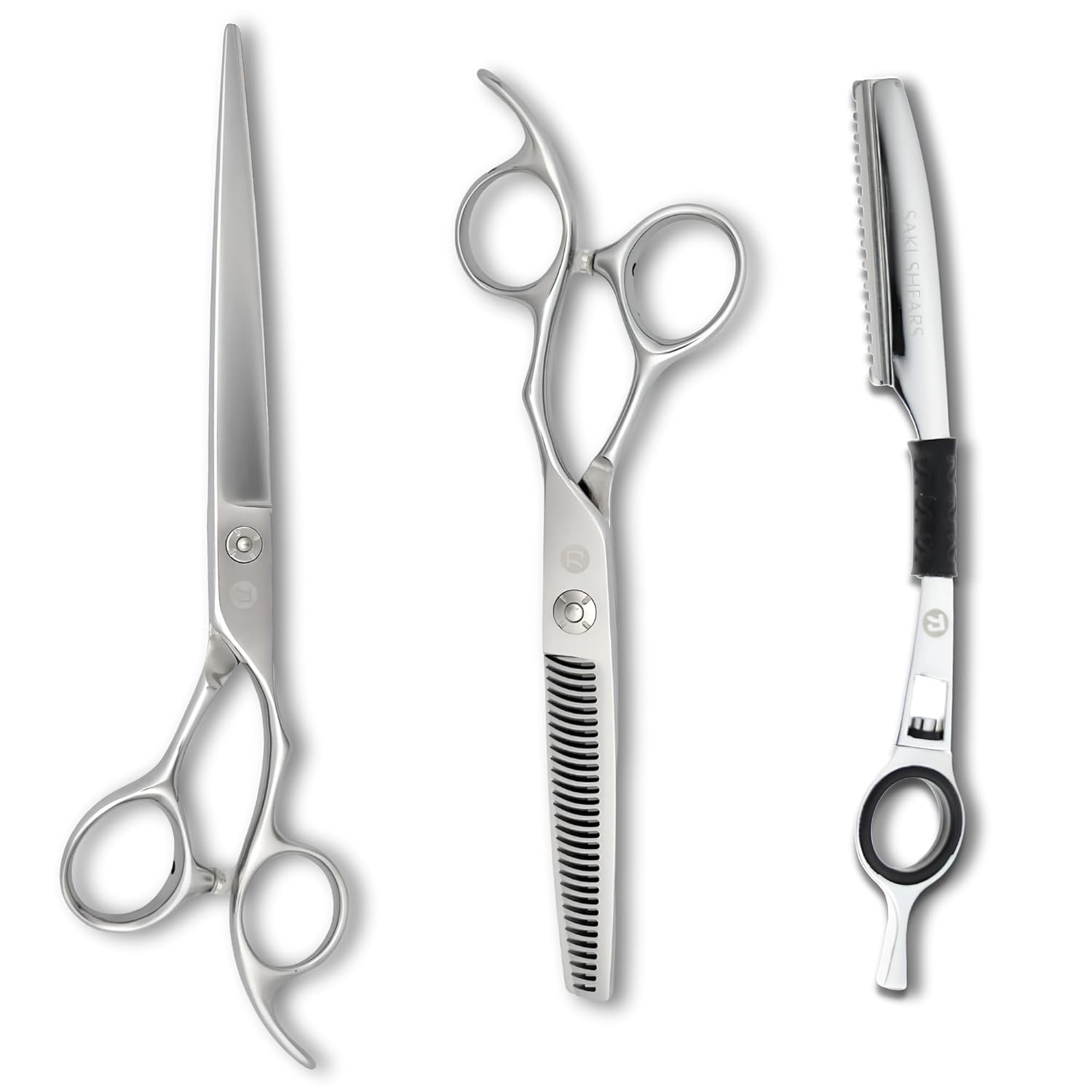 Saki Ha Professional Hair Shears Set 7.0 Inch - Includes Hair Scissors, Thinning Shears and Razor - Handmade from Japanese Steel