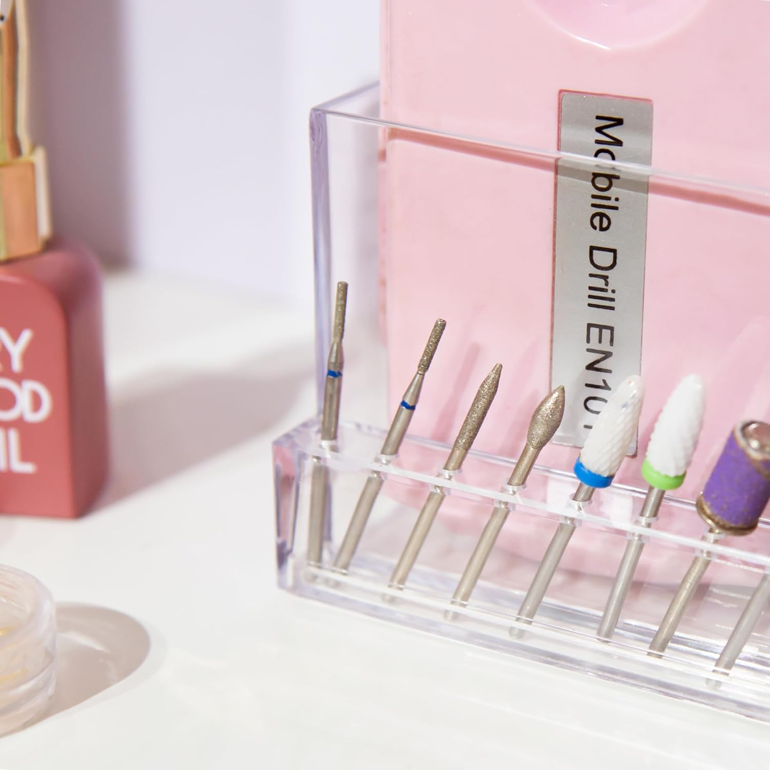 10 Holes Storage Box Holder Organizer to Display Nail Drill Bit File Brush Electric Machine Manicure Accessory, Grinding Tool Essentials, Acrylic Clear Transparent Stand Case Desk Room Accessories