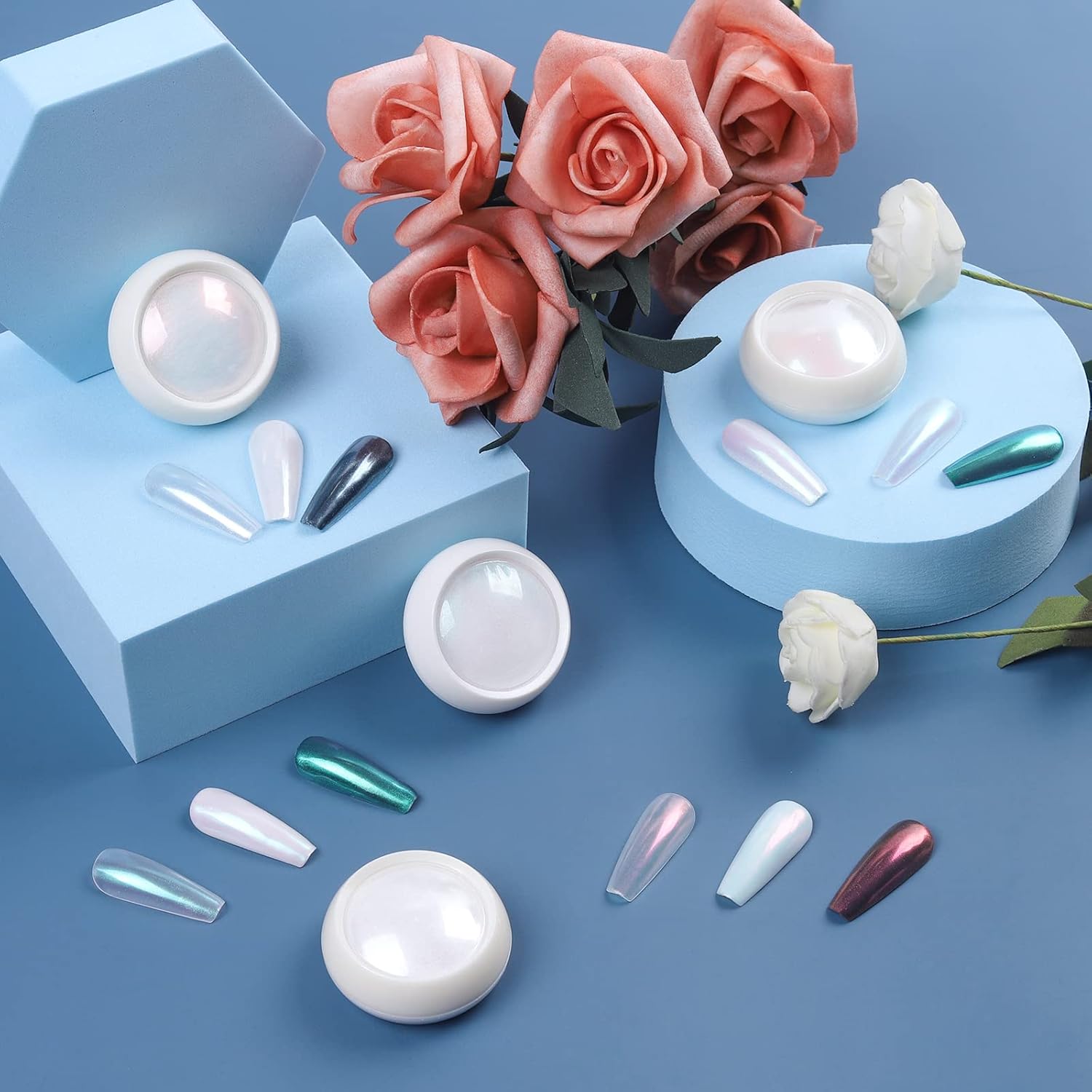 Artdone Chrome Nail Powder Metallic Mirror Glitter Effect Pigment Iridescent Aurora Mermaid Pearl Dust Kit for Gel Polish Nail Art Decoration, Resin Craft Arylic Powder