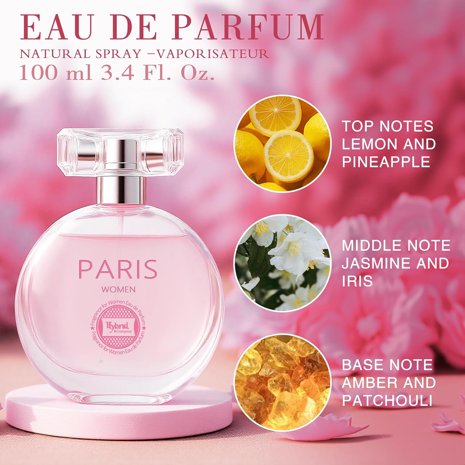 Hybrid & Company Paris Women Women Romantic and Sensual Perfume Eau de Parfum 3.4 Fl oz