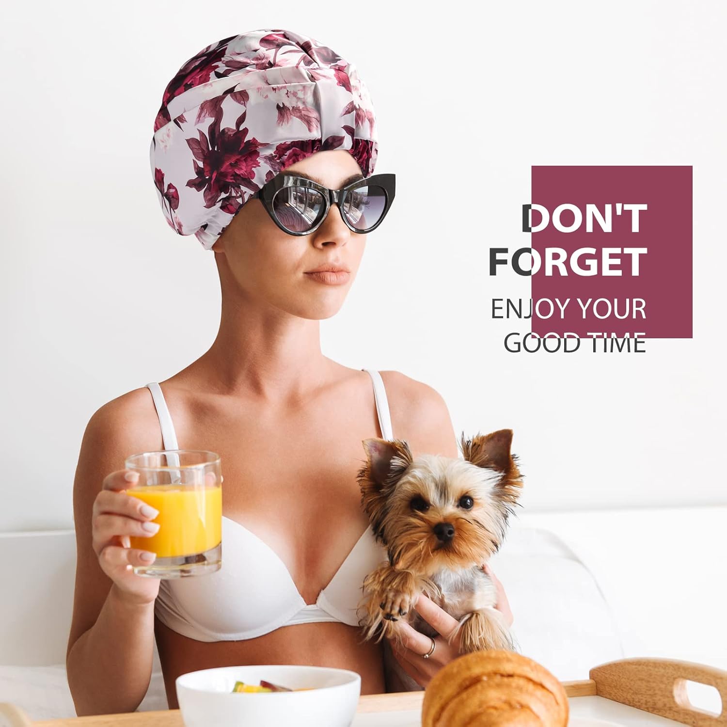 - Double Layer Design for Upgraded 100% Waterproof: Made of premium polyester outer layer coated with waterproof TPU, protects against humidity. Avoiding water vapor or water from entering your cap, always keeping your hair dry while in the shower or bathe.