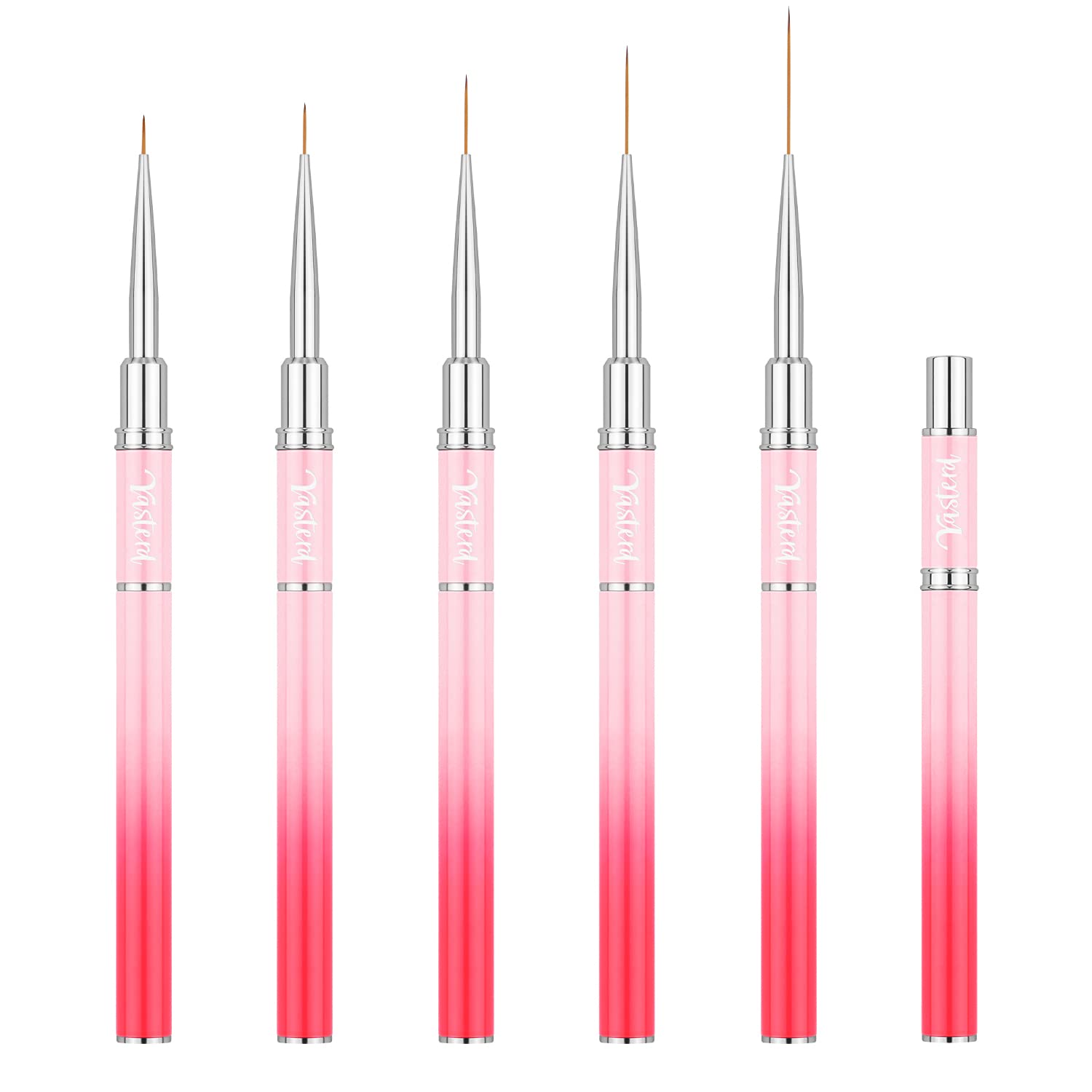 Yasterd Nail Art Brushes, 5pcs Long Nail Art Line Brushes for Details, Fine Designs, Thin Nail Design Brush Set Gel Polish Painting Pens Nail Brushes for Nail Art Sizes 7/9/14/20/25mm