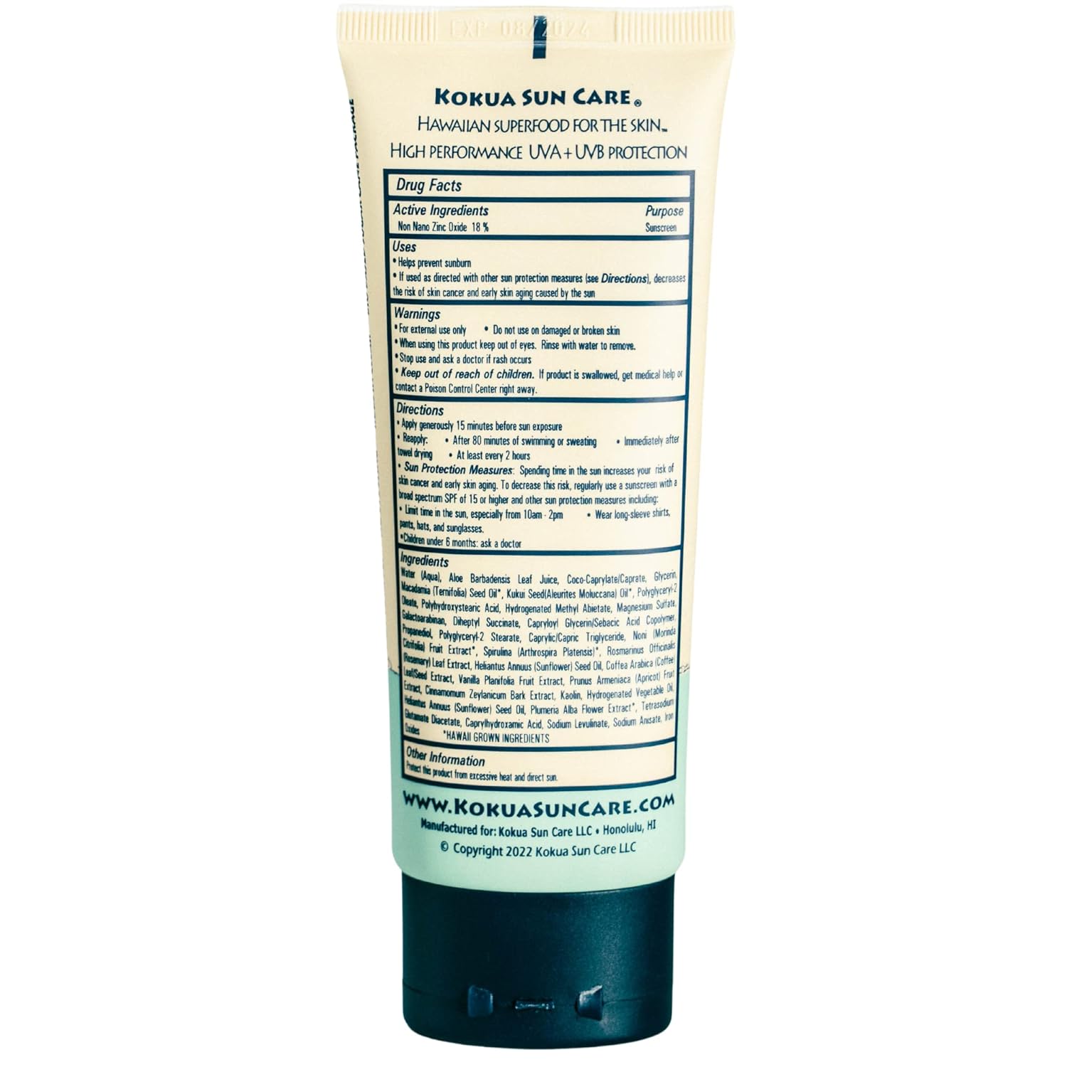 Kokua Sun Care Hawaiian Reef Safe SPF 30 | Zinc Oxide | Tinted Mineral for Face & Body | Sun Protection | Water Resistant | Chemical Free | Natural Ingredients