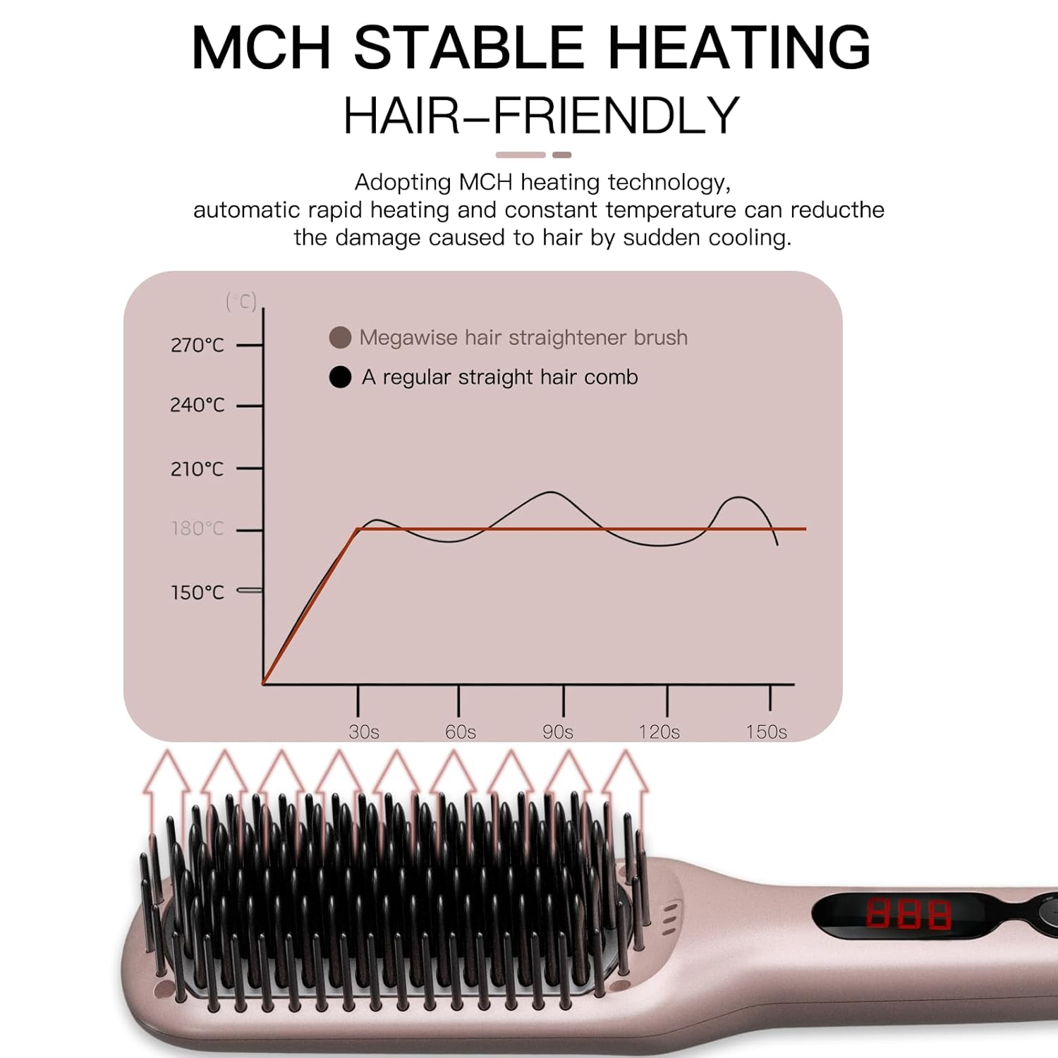 Updated 2025 MEGAWISE Hair Straightener Ceramic Brush ; Anti-Scald Dual Voltage Flat Iron Hot Brush | Rotatable Cord |Auto Shutoff | Anti-frizz |for All Hair Types (Pink)