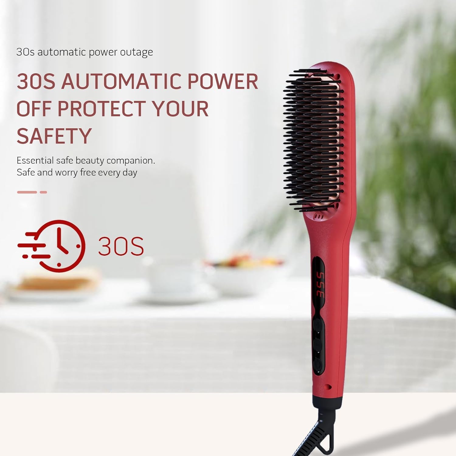Updated Megawise Pro Ceramic Ionic Hair Straightener Brush – Fast 20s Heating, Auto-Off, Anti-Scald, Dual Voltage, Rotatable Power Cord – Home Salon Styling (Tomato Red)