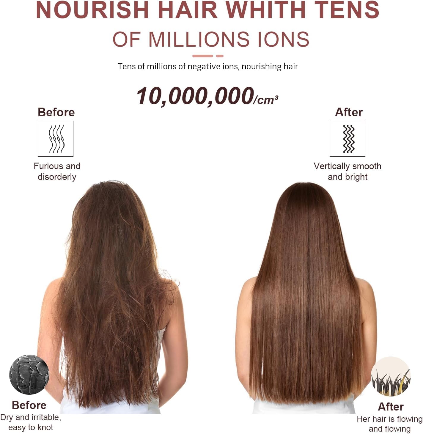 - Advanced Technology with Fast Heating: Reduces frizz, leaving your hair silky, smooth, and healthy-looking. Experience enhanced shine and manageability with every use. Heats up quickly with 50% longer and denser nano heating teeth, ensuring even heat distribution for all hair types.
