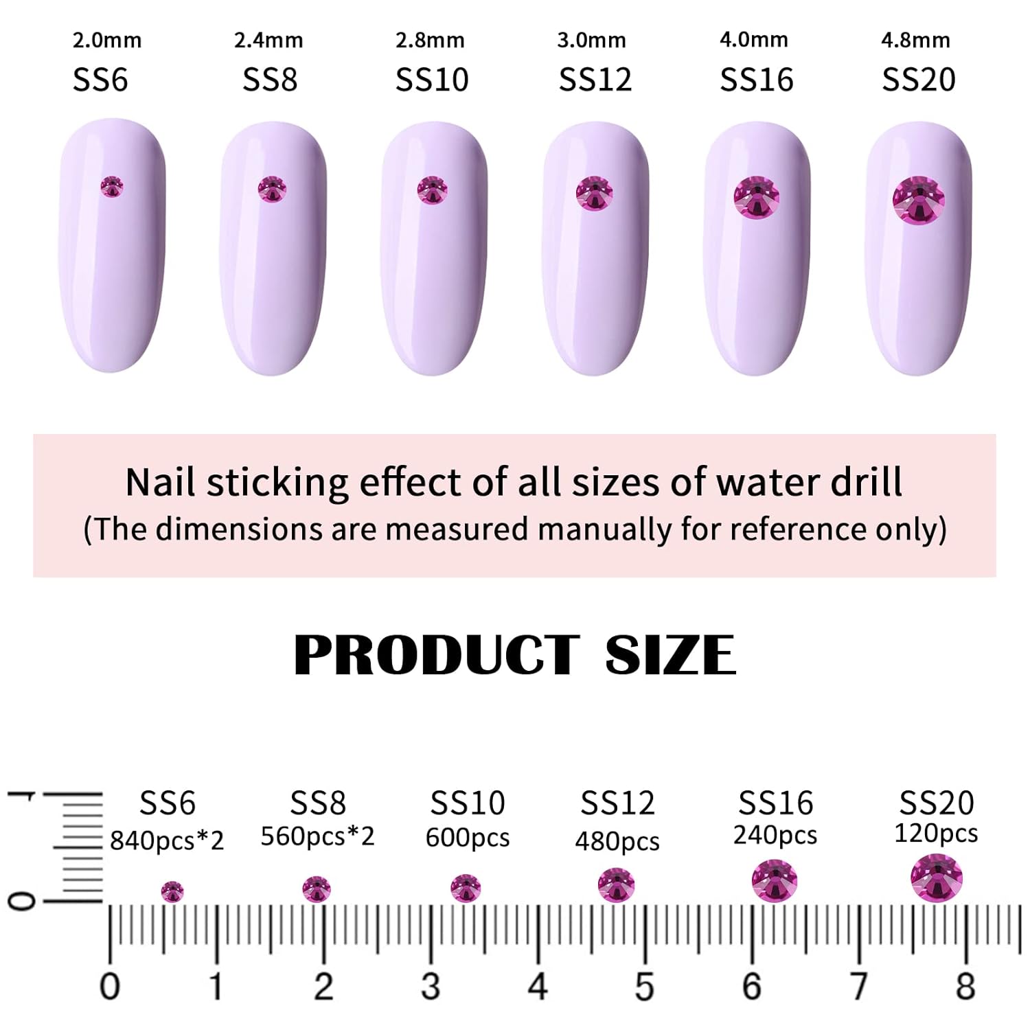- ๐Product Packaging: Boxed SS6 2MM - 1680 Pcs, SS8 2.4MM - 1120 Pcs, SS10 2.8MM - 600 Pcs, SS12 3MM - 480 Pcs, SS16 4MM - 240 Pcs, SS20 4.8MM - 120 Pcs, 1 pcs Tweezers and 1 pcs picking pen.