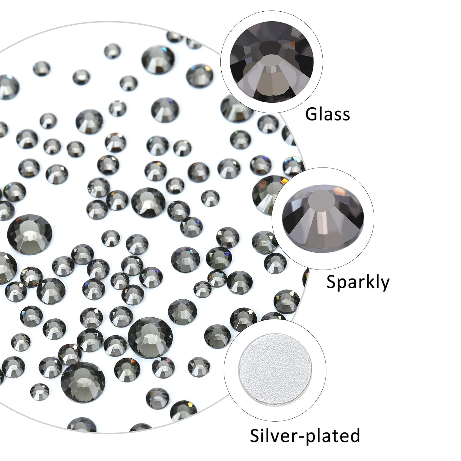 - ๐Material: glass/artificial crystal. The surface has a high-precision section, multi-faceted cutting, high brightness and high gloss. Flat bottom, round shape, silver plated back, non-allergenic. The color runs through the rhinestones without fading.