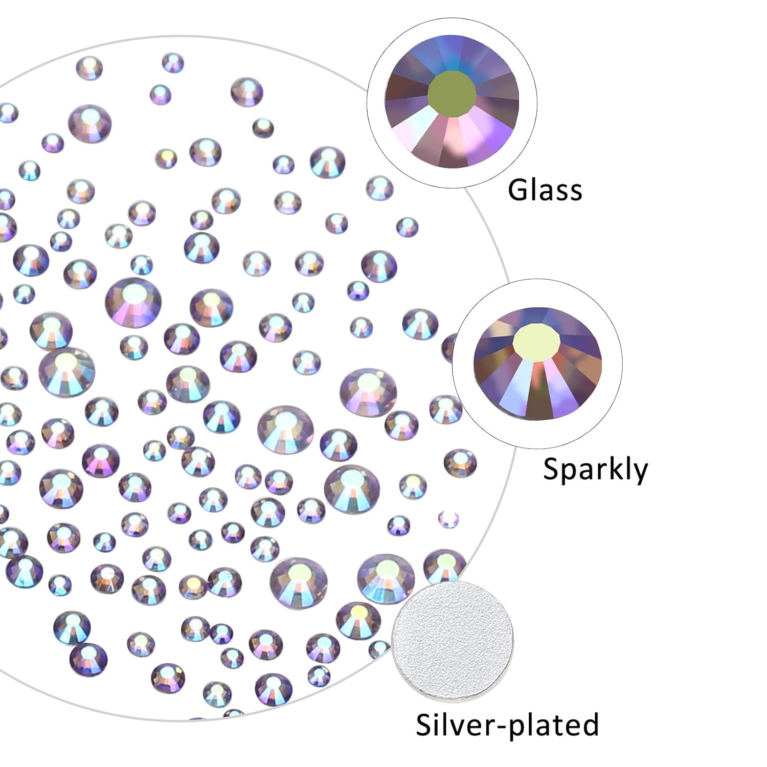 - ๐Material: glass/artificial crystal. The surface has a high-precision section, multi-faceted cutting, high brightness and high gloss. Flat bottom, round shape, silver plated back, non-allergenic. The color runs through the rhinestones without fading.