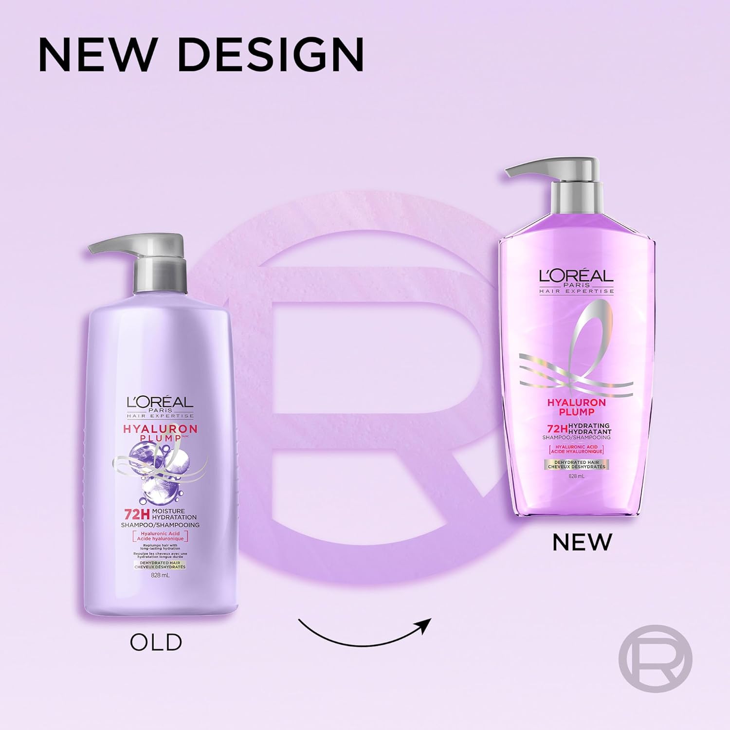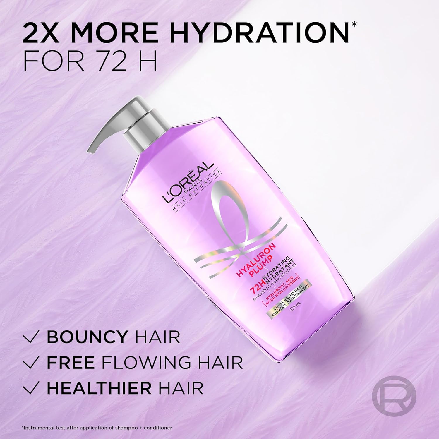L'Oreal Paris Elvive Hyaluron Plump Hydrating Shampoo for Dehydrated, Dry Hair Infused with Hyaluronic Acid Care Complex, Paraben-Free, 26.5 Fl Oz