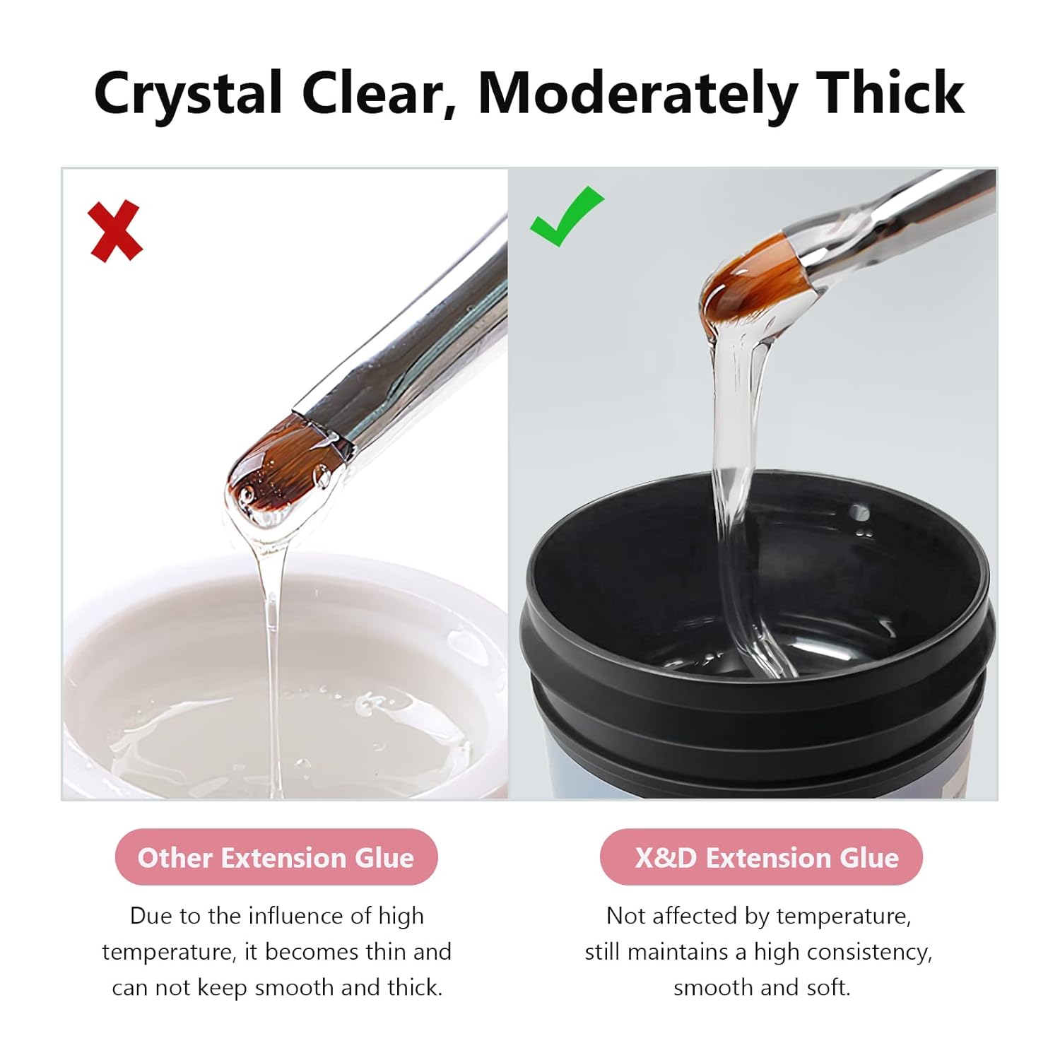 - [EASY TO APPLY] Quick dry with any UV light (NOT INCLUDED), this crystal clear nail gel polish is easy to apply and soak off. The nail extension gel is made of harmless, non-poisonous, non-pungent ingredients.