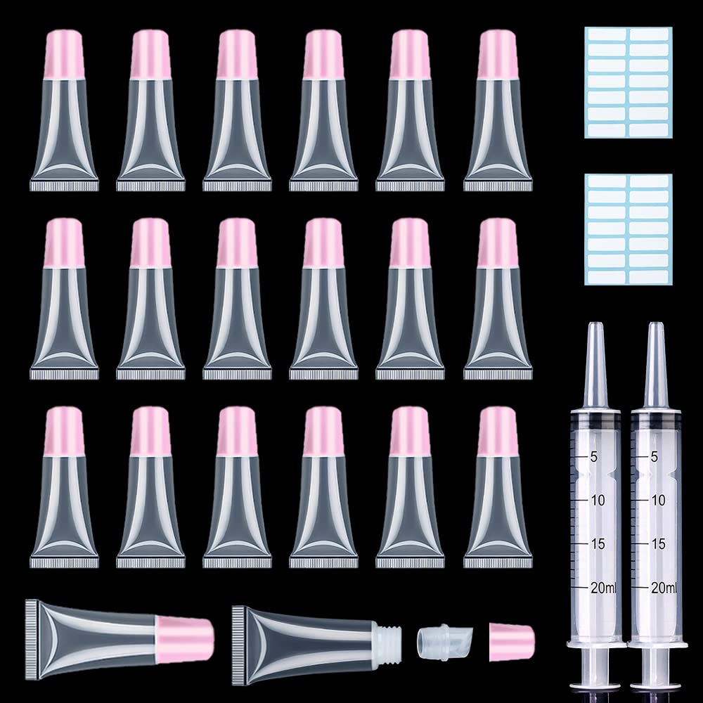 - ✔【SUFFICIENT PACKAGE】-Included 50pcs 5ml lip gloss tubes with pink cap, 2 x 20ml Syringe and 28pcs tag labels stickers to match with syringes, keeping the bottles out of unwanted bubbles. This useful set is sufficient and convenient for your daily use and replacement.