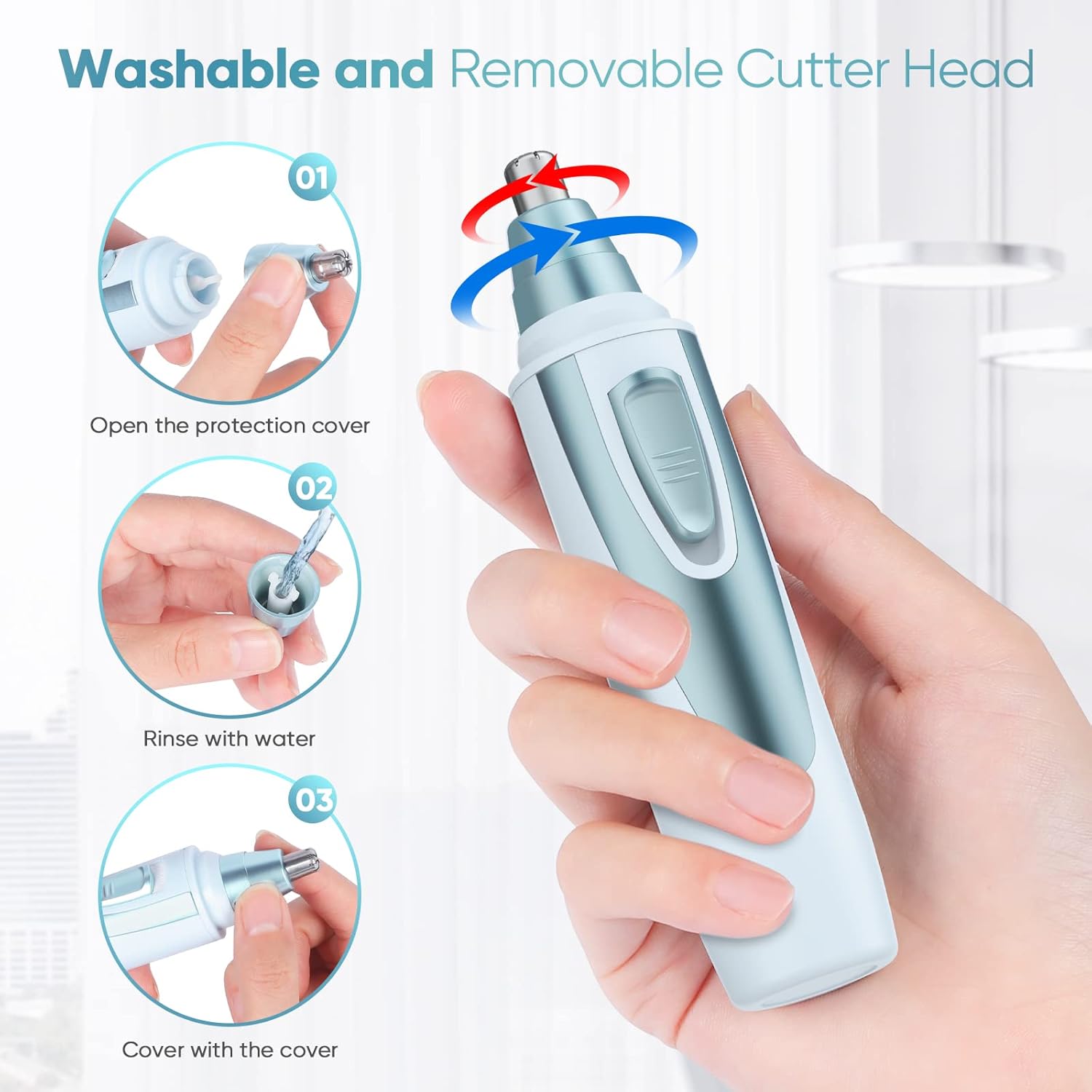 - Dual-Edge Spinning Blades: This nose hair trimmer features a dual-edge spinning blades system with a protective cover, inner 360° rotating design, which smoothly and precisely removes the hairs without painful or unpleasant pulling. It is comfortable and easy to use. Let you show your best at work or appointments.