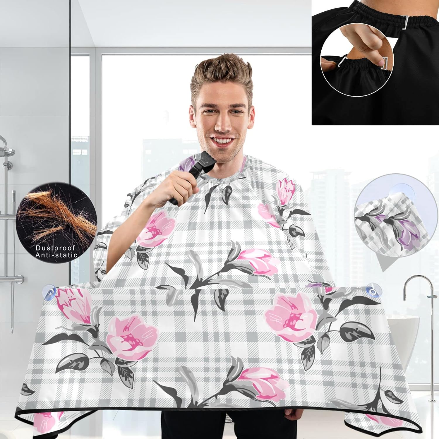 visesunny Barber Cape Beautiful Flowers Pattern Polyester Hair Cutting Salon Cape Apron Anti-Static Haircut Water-Resistant Shaving Cloth Beard Shaving Bib Hairdressing Cape