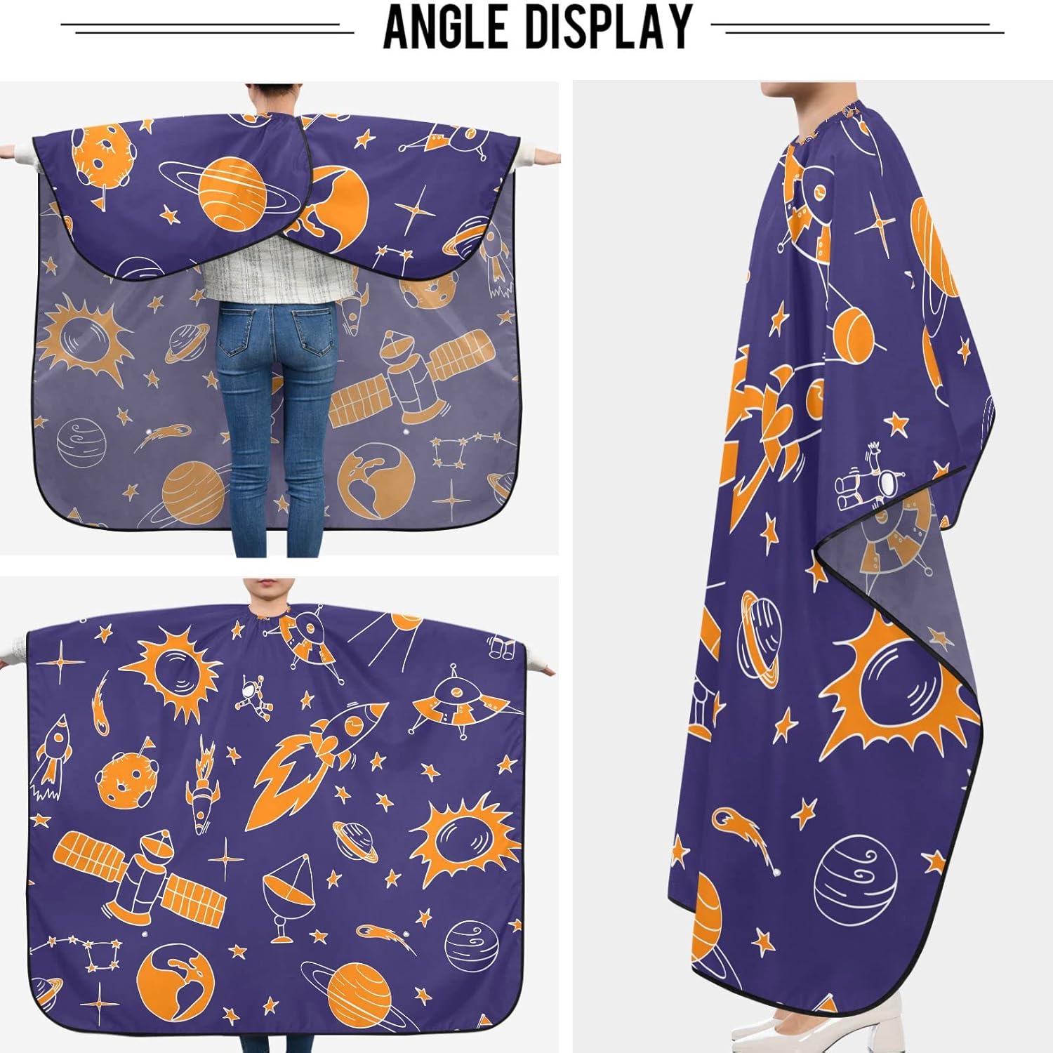 visesunny Barber Cape Space Doodle Polyester Hair Cutting Salon Cape Apron Anti-Static Haircut Water-Resistant Shaving Cloth Beard Shaving Bib Hairdressing Cape