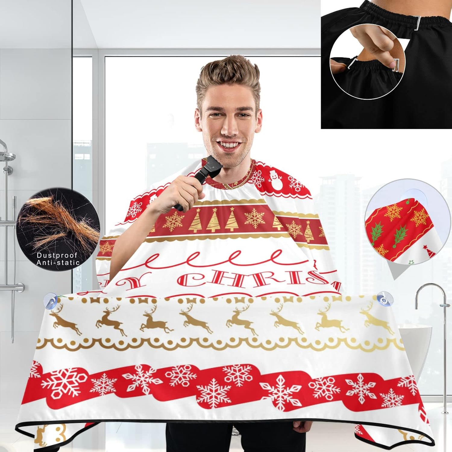 visesunny Barber Cape Christmas Pattern Polyester Hair Cutting Salon Cape Apron Anti-Static Haircut Water-Resistant Shaving Cloth Beard Shaving Bib Hairdressing Cape