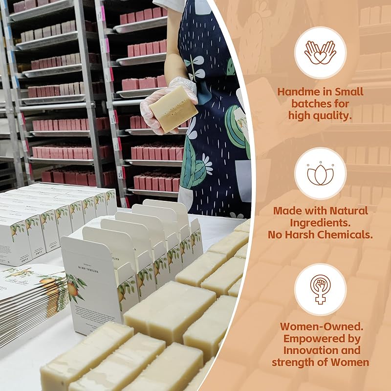 - Cold Processed Soap: Handmade in small batches using cold process method to retain purity and potency of natural ingredients.