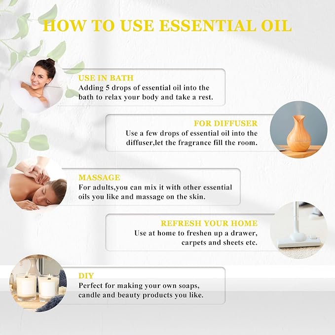 - Multiple Uses: Great for diffuser, DIY soap, candle making, bath bombs etc. Add some fragrance to your daily routine and fully enjoy the fun of the benefits of aromatherapy.
