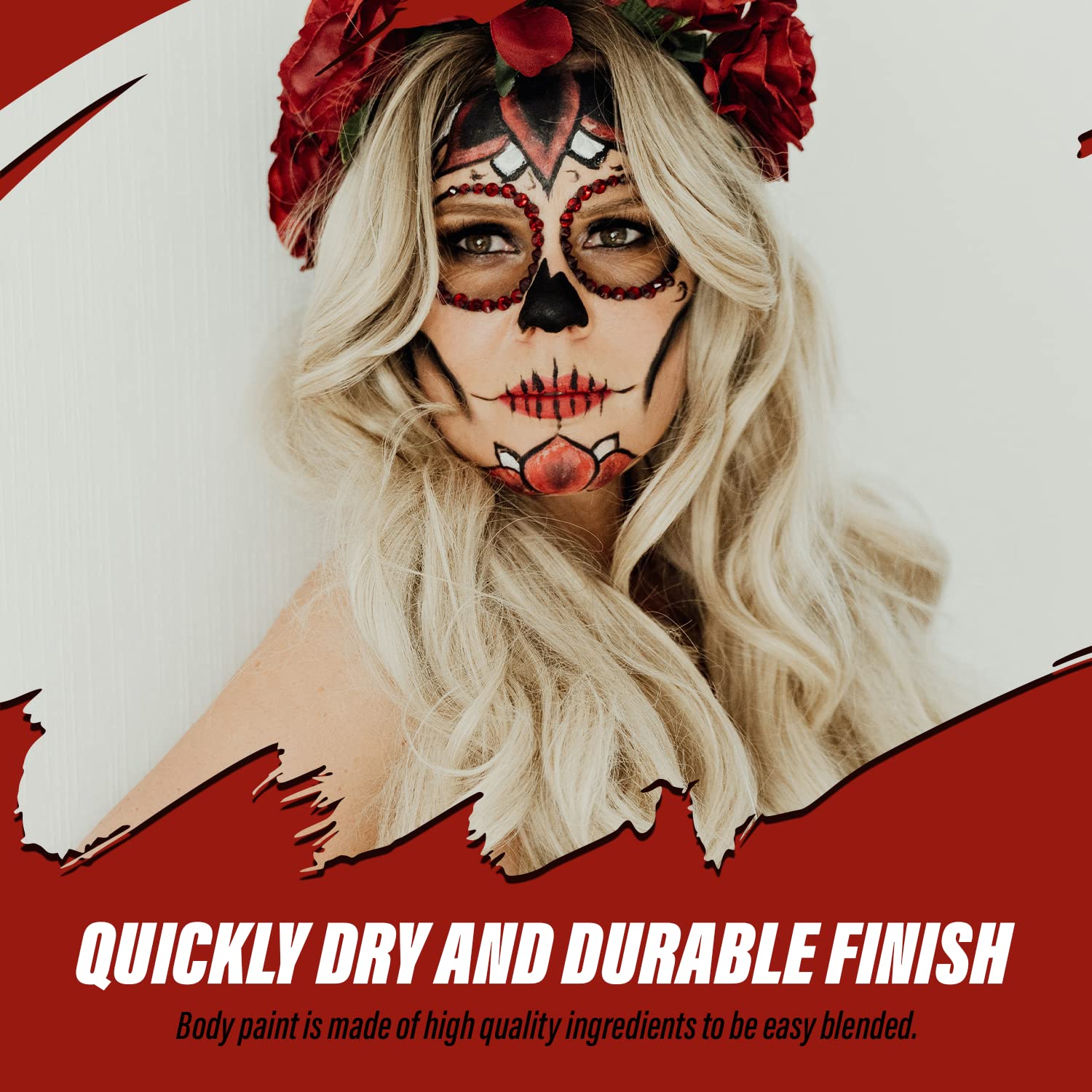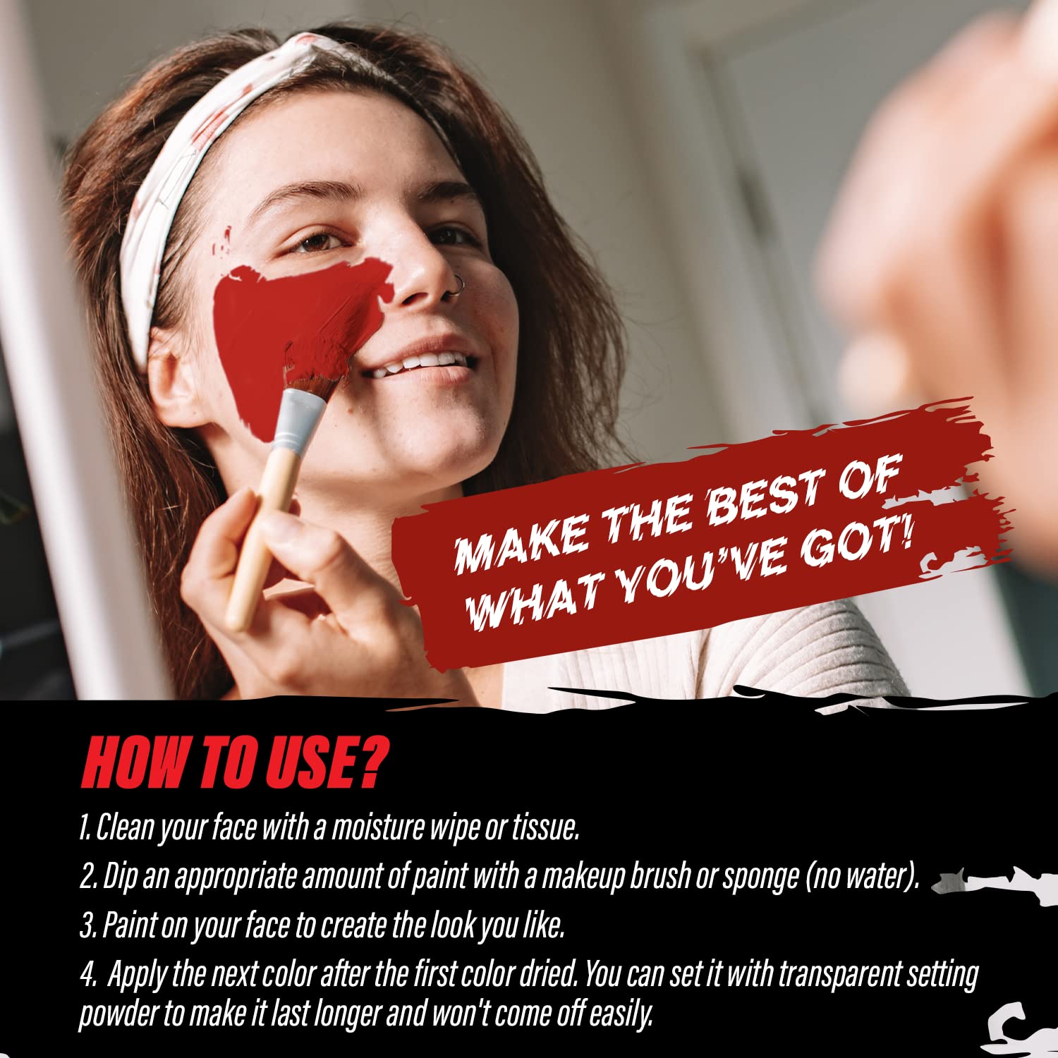 - Red Face Paint And Red Body Paint In Cream Form To Use For Halloween Or Cosplay; Has A Velvet Texture That Blends Well With A Smooth Application