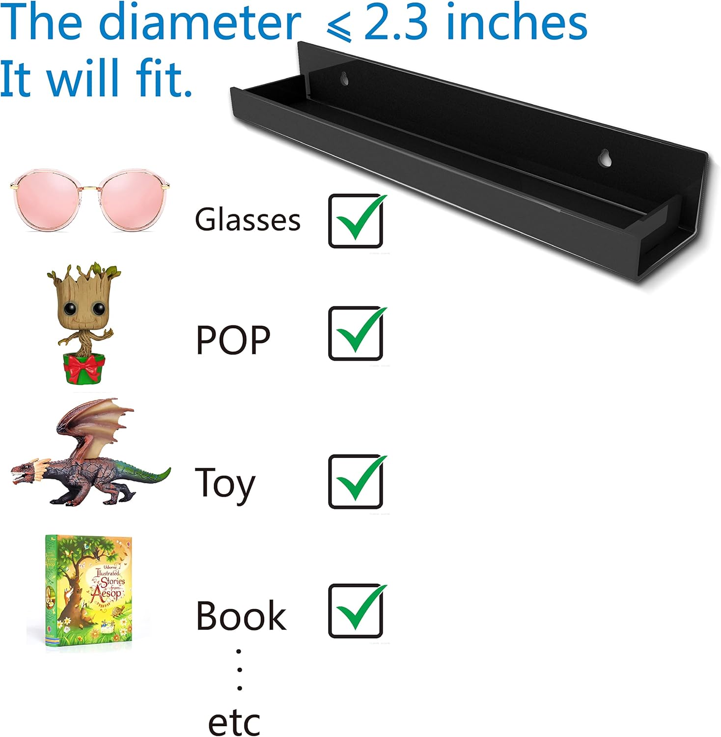 4 Pack 15 Inch Black Acrylic Shelves, Black Kids Floating Bookshelf for Kids Room, Modern Nail Polish Rack Sunglasses Essential Oil Picture Ledge Display Toy Storage Wall Shelf